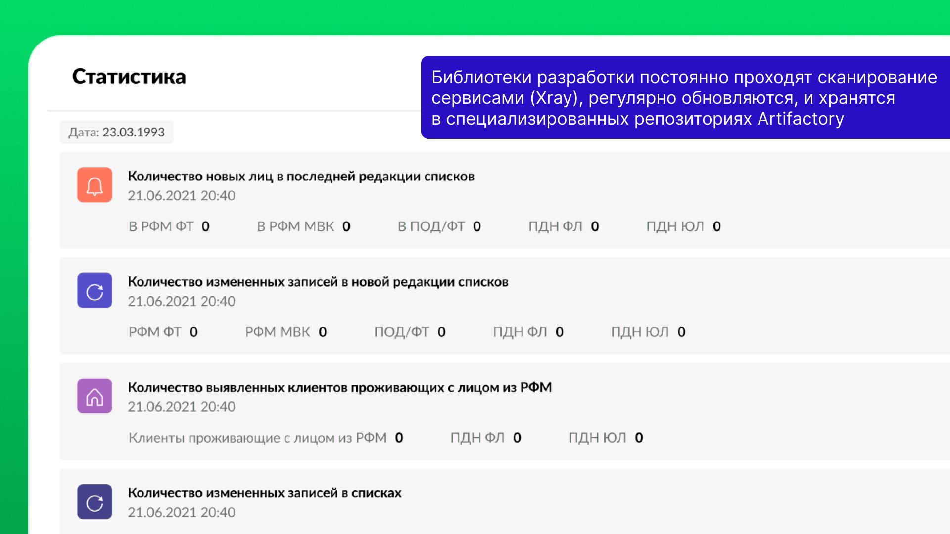 · Автоматизировали получение списков/перечней из внешних источников, в том числе Росфинмониторинга;
