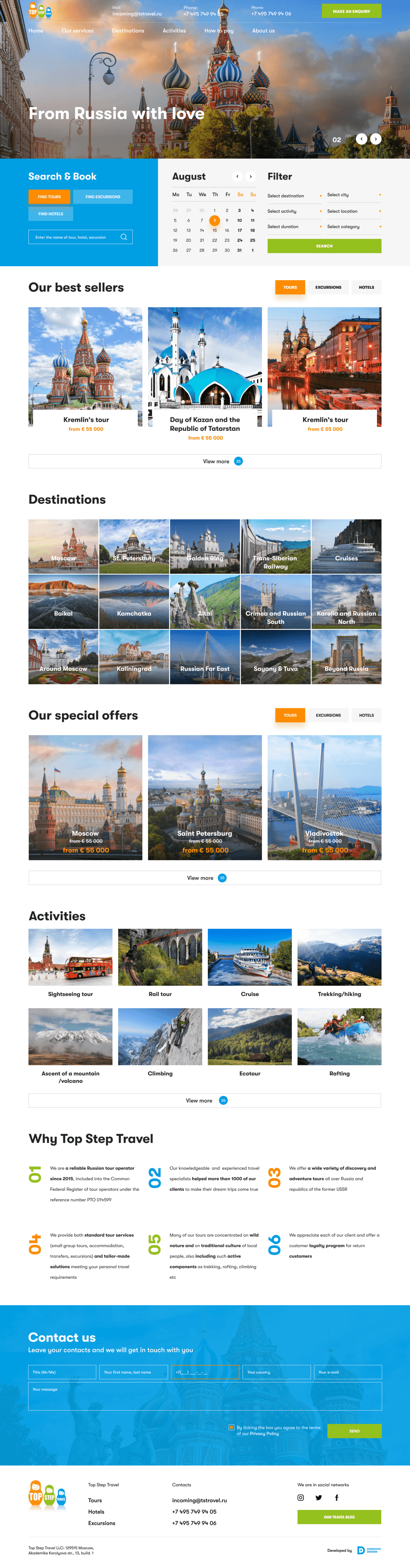 На этапе разработки дизайна сайта перед нами стояла интересная творческая задача: создать красочный сайт, подчёркивающий отличительные особенности туризма по России. Как результат — лёгкость восприятия при информационной насыщенности и удобная навигация.