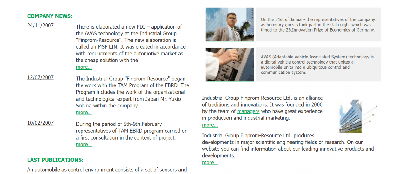 1. Создание современного, адаптивного веб-сайта, который представляет промышленная группа.