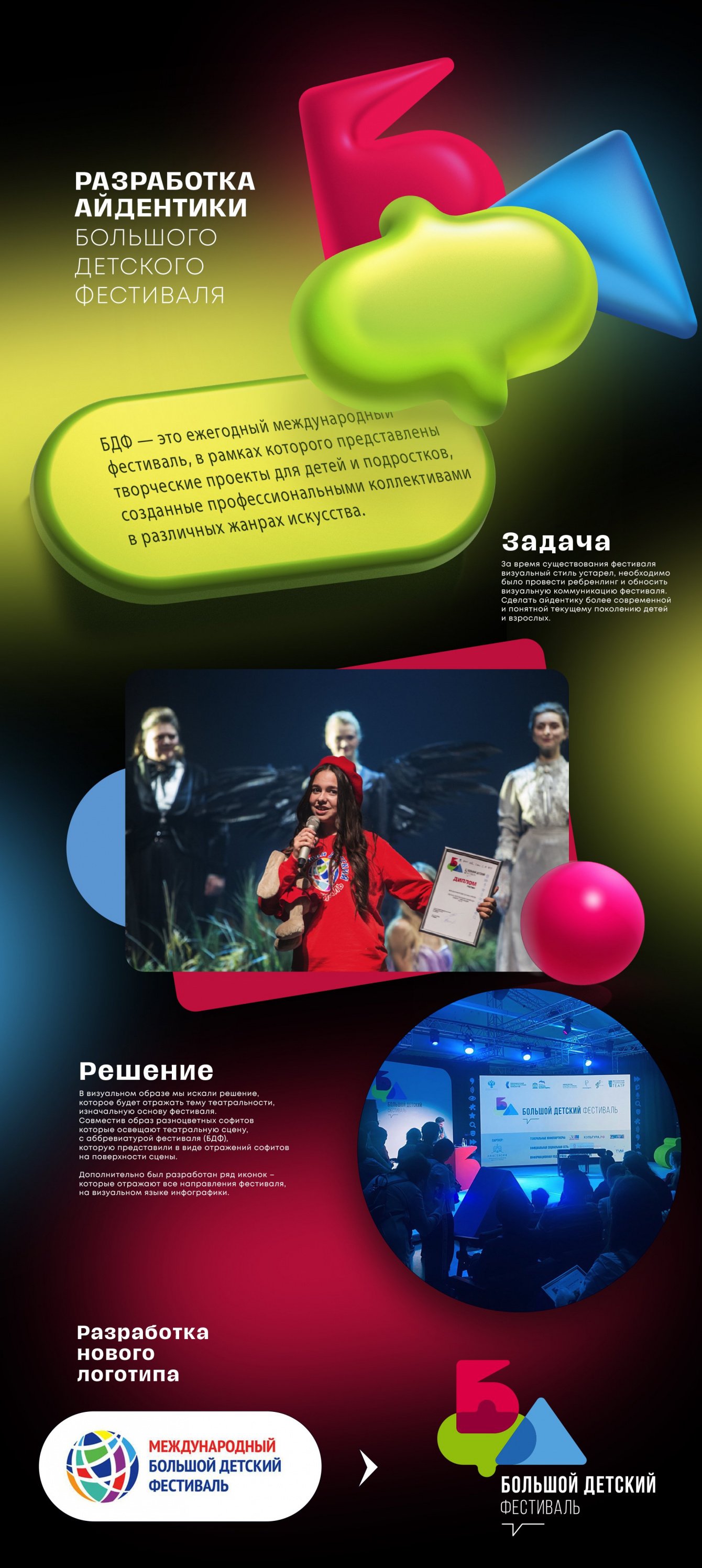 За время существования фестиваля визуальный стиль устарел, необходимо было провести ребрендинг и обновить визуальную коммуникацию фестиваля. Сделать айдентику более современной и понятной текущему поколению детей и взрослых.