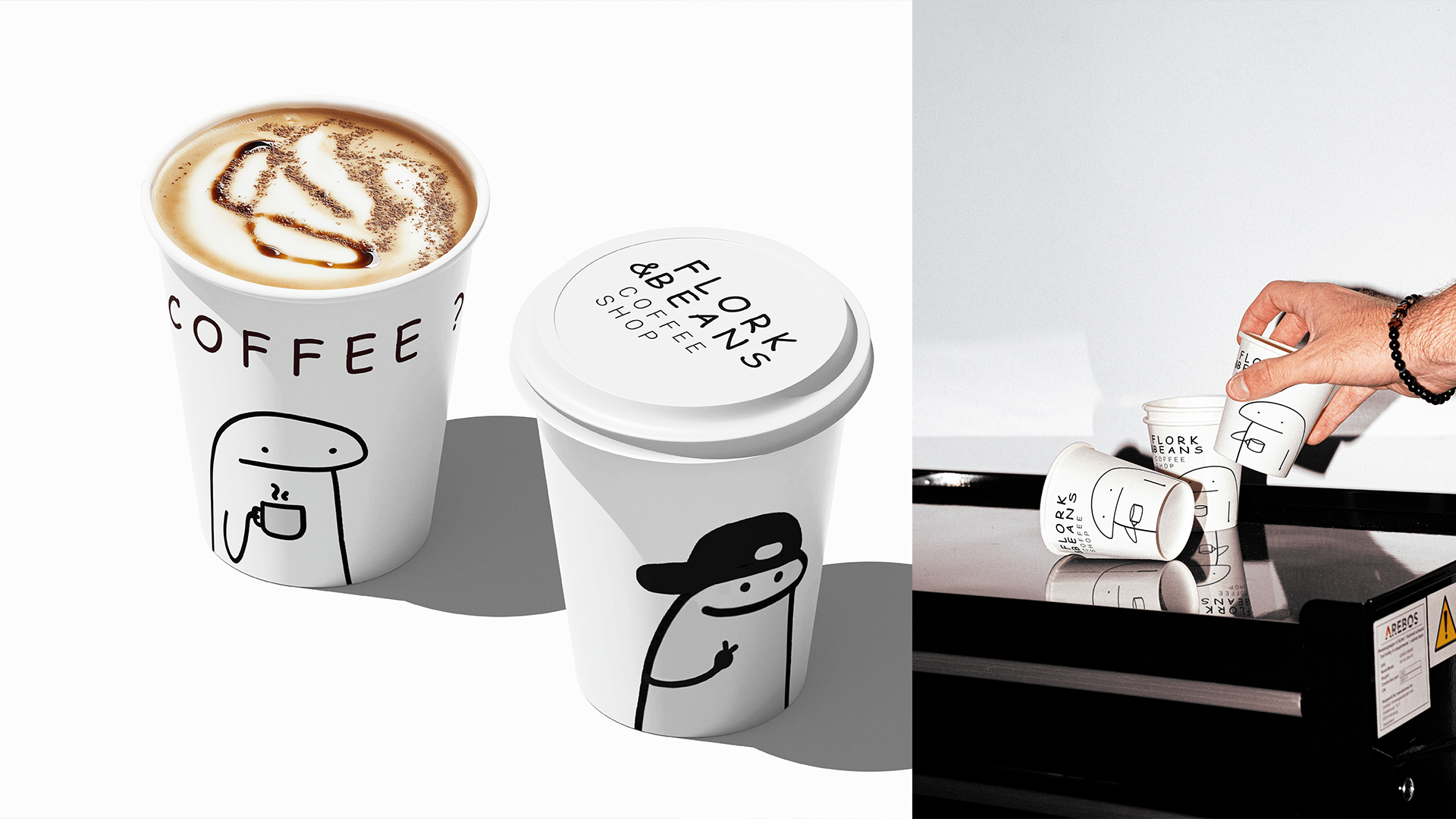 Разработать смелую и ироничную айдентику для кофейни Flork & Beans. Главная цель - отстроиться от привычного «душного премиума» и «стерильного минимализма», создав бренд для тех, кто хочет просто выпить утренний кофе без лишнего пафоса. Необходимо было сформировать визуальный образ, который говорит с аудиторией честно, на одном языке и не боится быть смешным.