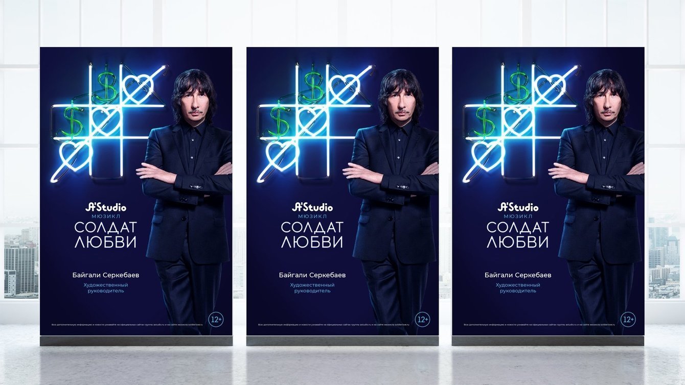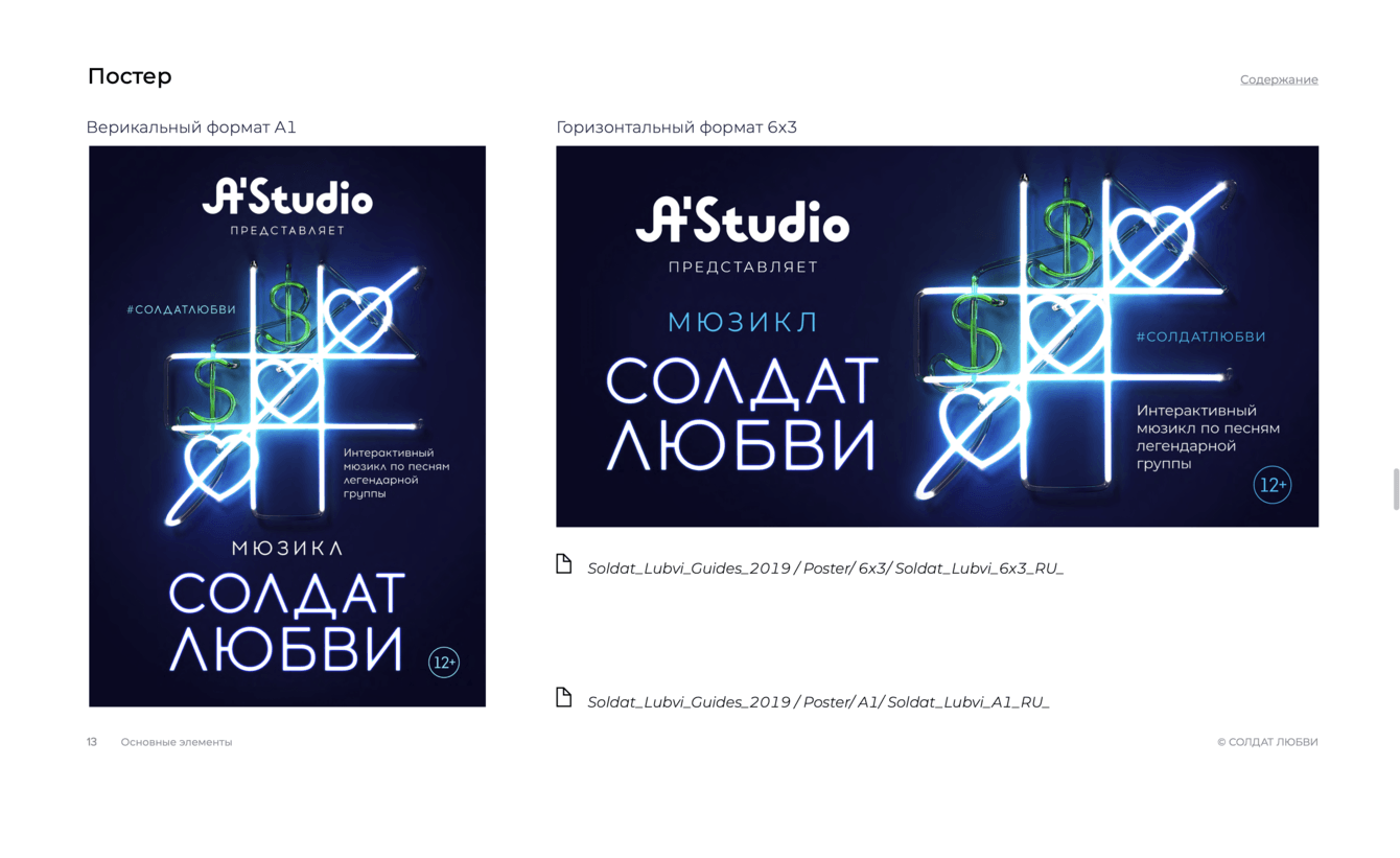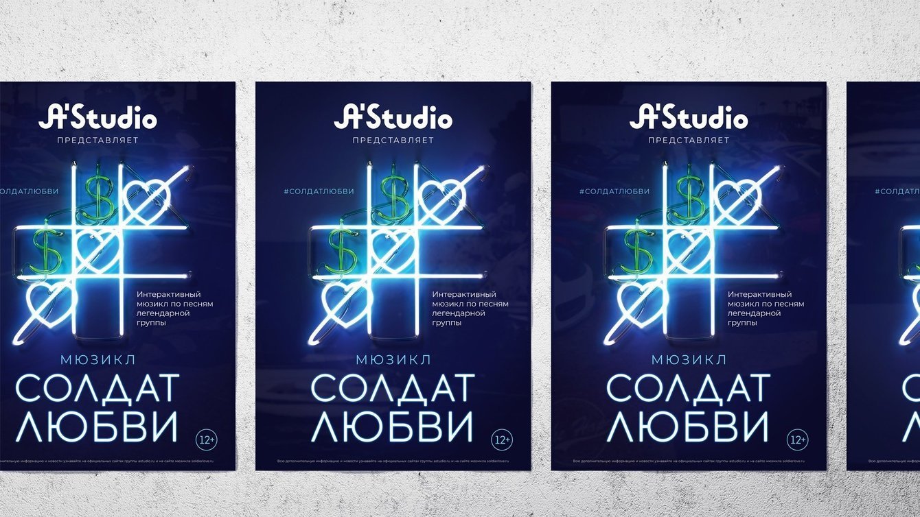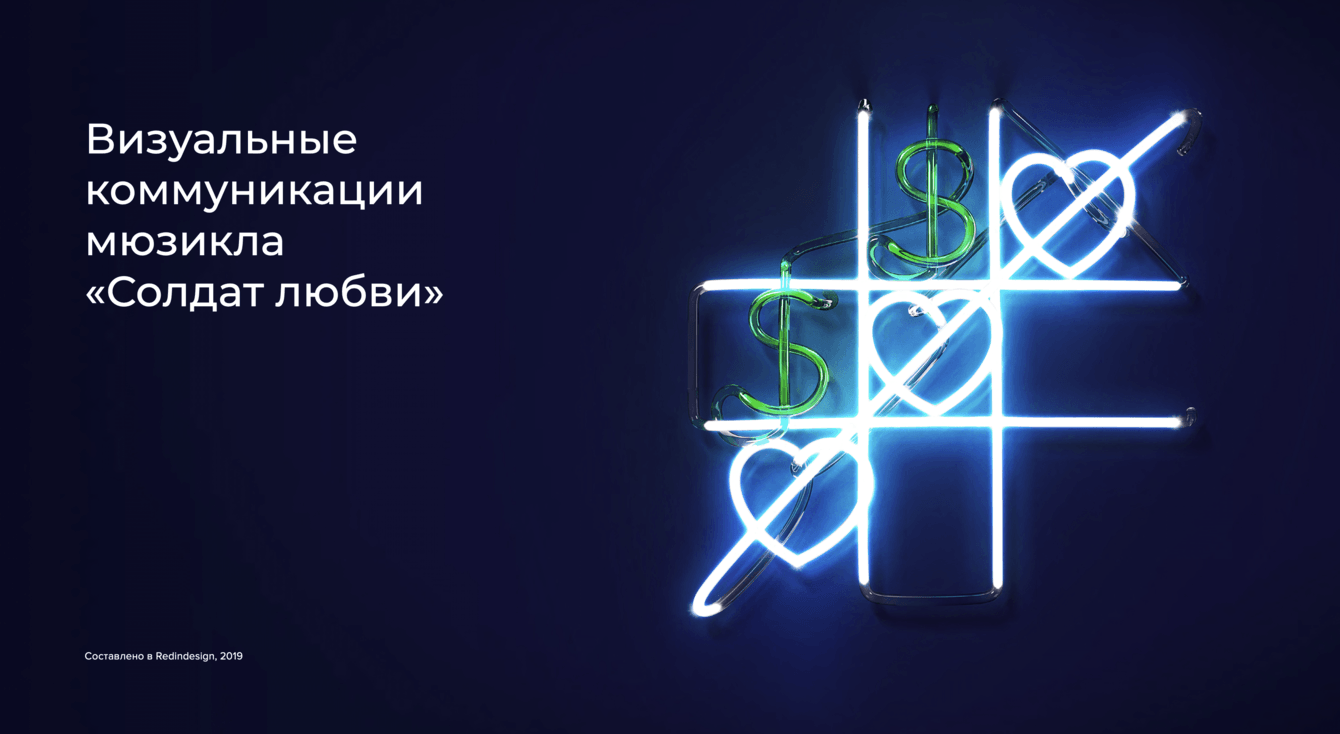Разработать имиджевое визуальное решение и брендбук для мюзикла "СОЛДАТ УДАЧИ"