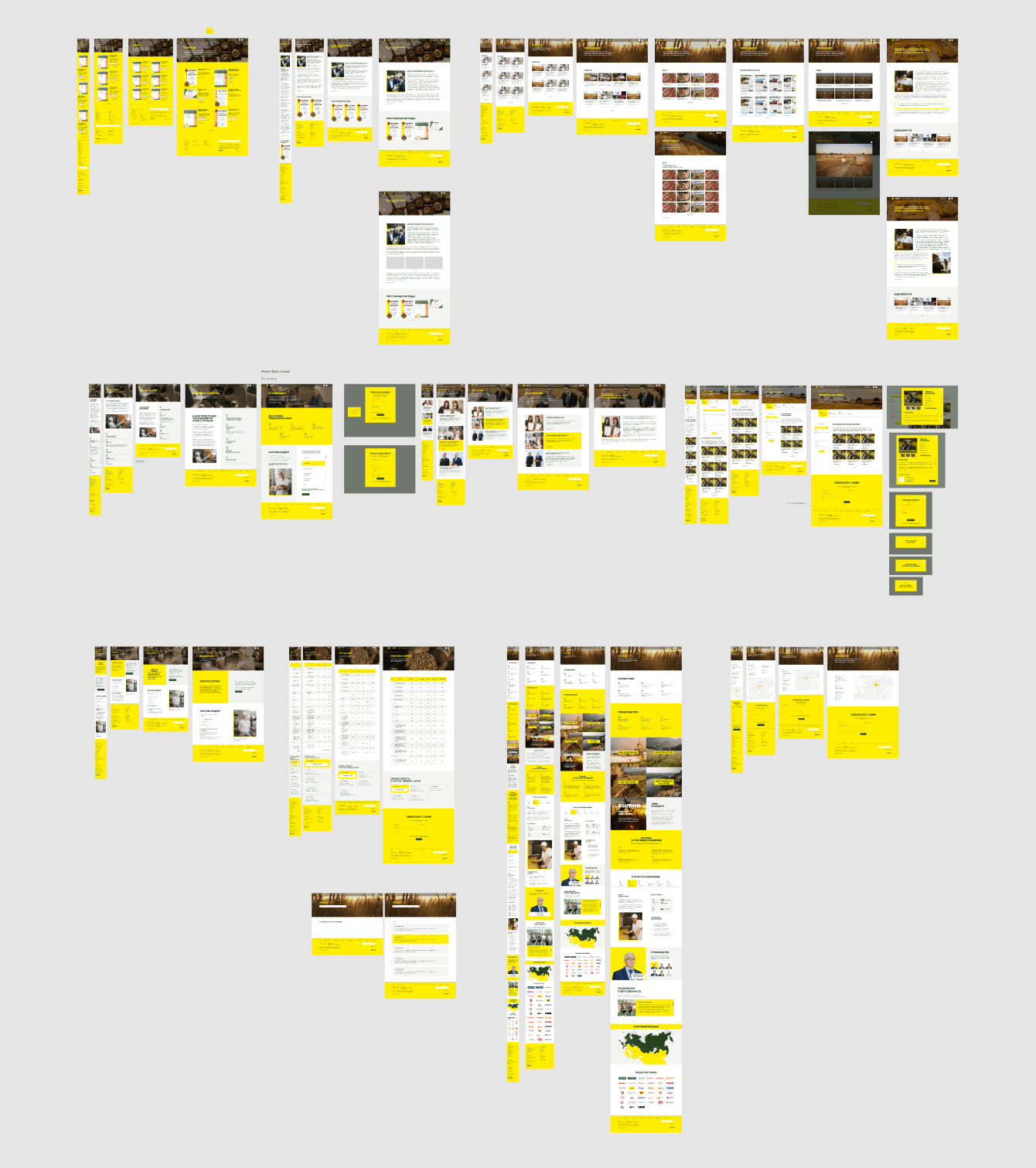 Первоначально нашим дизайнером разработано и предложено несколько вариантов дизайна с использованием фирменных цветов: зеленого и желтого. Заказчик хотел, чтобы основной цвет сайта был фирменный зеленый, однако на практике оказалось, что это слишком мрачно. В итоге основными цветами стали фирменный желтый и белый.