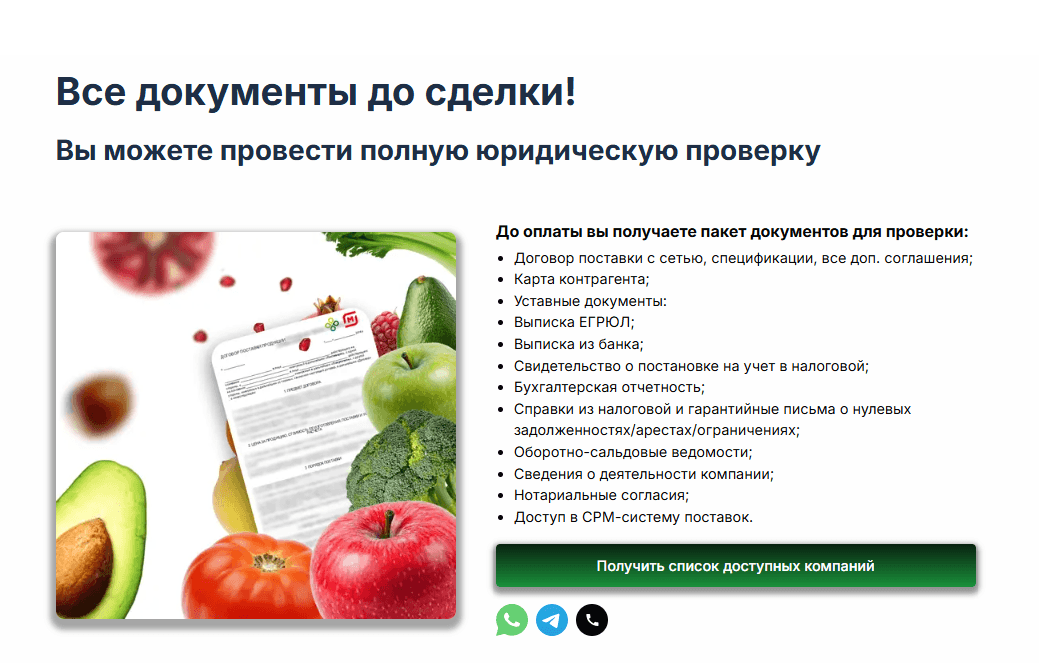 “Вы получаете полностью готовое ООО, которое уже прошло проверки ритейла и готово к поставкам с первого дня” — это мощное торговое предложение для B2B-клиента, мотивирующее к покупке.