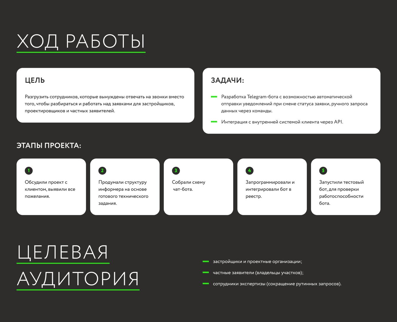 Клиент обратился с задачей создать чат-бота, который разгрузил бы сотрудников компании и взял на себя часть функционала по работе с заявителями.