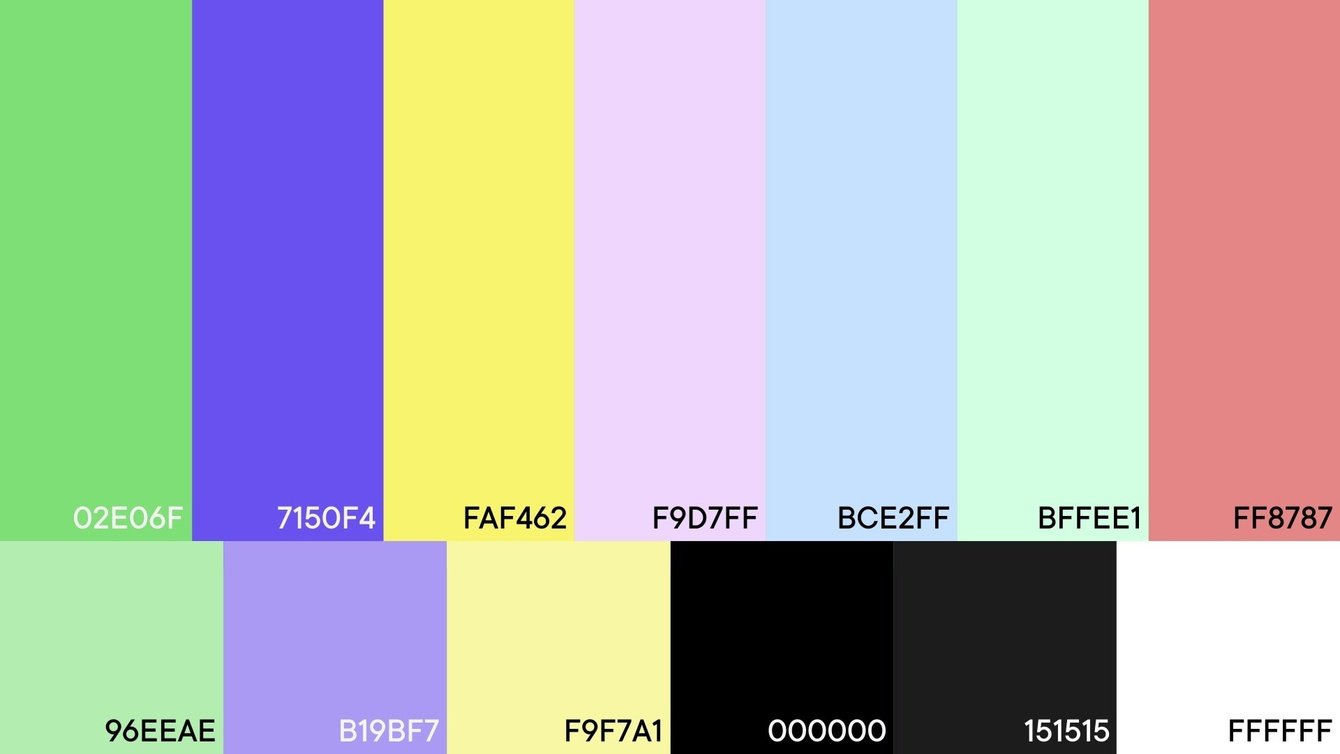 Основная цветовая гамма состоит из ярких акцентных цветов и нескольких тусклых цветов, подходящих по тональности.