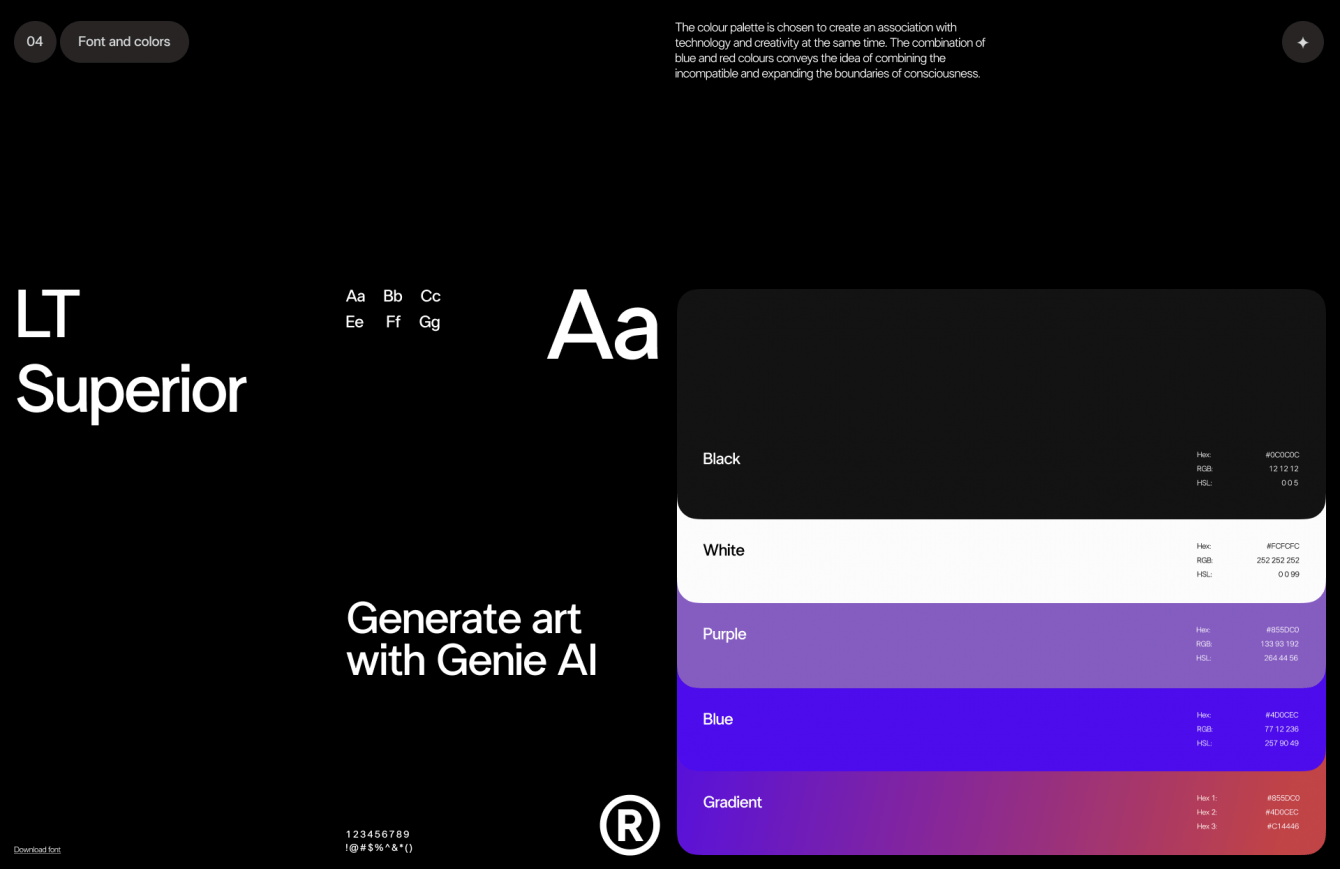 Для брендинга подобрали шрифт без засечек. Он органично сочетает в себе неподвластную времени элегантность и современную функциональность. Взяли яркие акцентные цвета, отсылающие нас к волшебству джина.