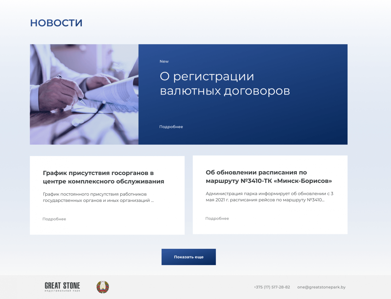 Государственное учреждение «Администрация индустриального парка «Великий камень» благодарит коллектив ООО «Лайкит» за качественно проведенные работы по модернизации сайта «Одной станции» https://onestation.by в рамках договора №010822-TП от 26.07.2022 со строгим соблюдением договорных сроков их выполнения. Отмечаем оперативное и безвозмездное исправление ошибок, включая ошибки предыдущих разработчиков.