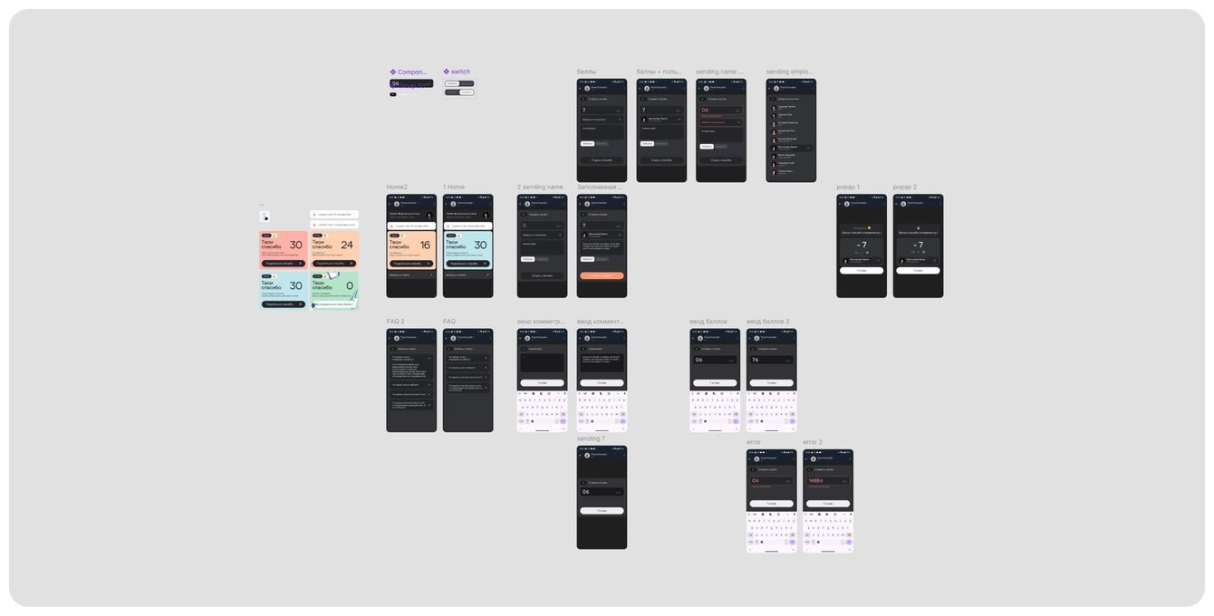 3. Баллы и взаимодействие. Каждый месяц сотрудники получают 30 баллов, которые могут дарить друг другу. Приложение показывает текущий баланс, а также отправляет мотивирующие сообщения. Например, если баллы заканчиваются, пользователю высвечивается уведомление: «Mission Complete! Ваше сердце преисполнено добротой».