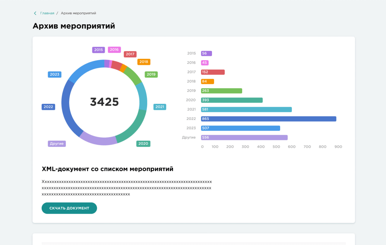 Мероприятия — одна из главных сущностей платформы. По ним можно судить об активности пользователей. Количество мероприятий растет с каждым годом, по сравнению со стартом платформы число выросло в 15 раз — это говорит о том, что продукт развивается и становится все более востребованным.