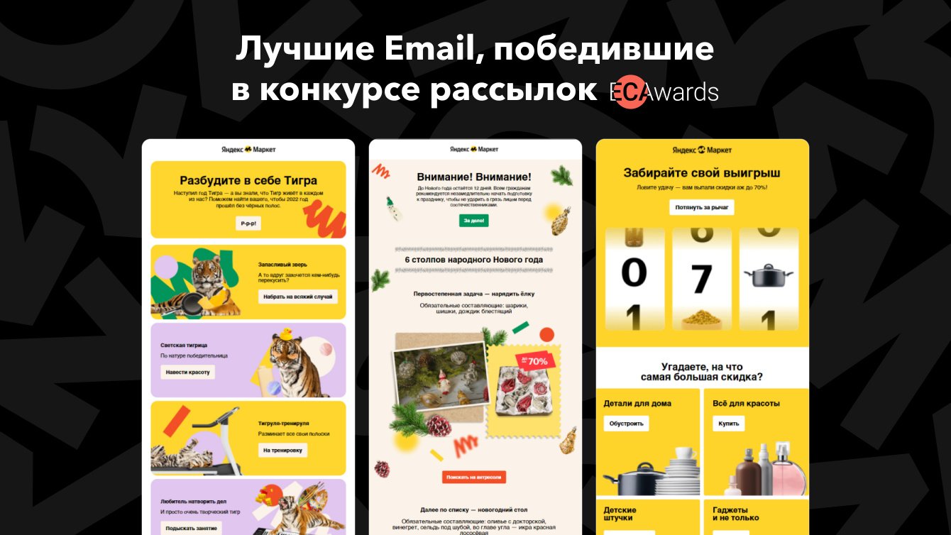 Также мы подавали наши работы на конкурс Email Competitors Awards. Клиент поддержал эту инициативу, так как высоко оценил предложенные нами концепции. Благодаря качественному дизайну, текстам и вёрстке наши рассылки 9 раз получали награды в различных номинациях.