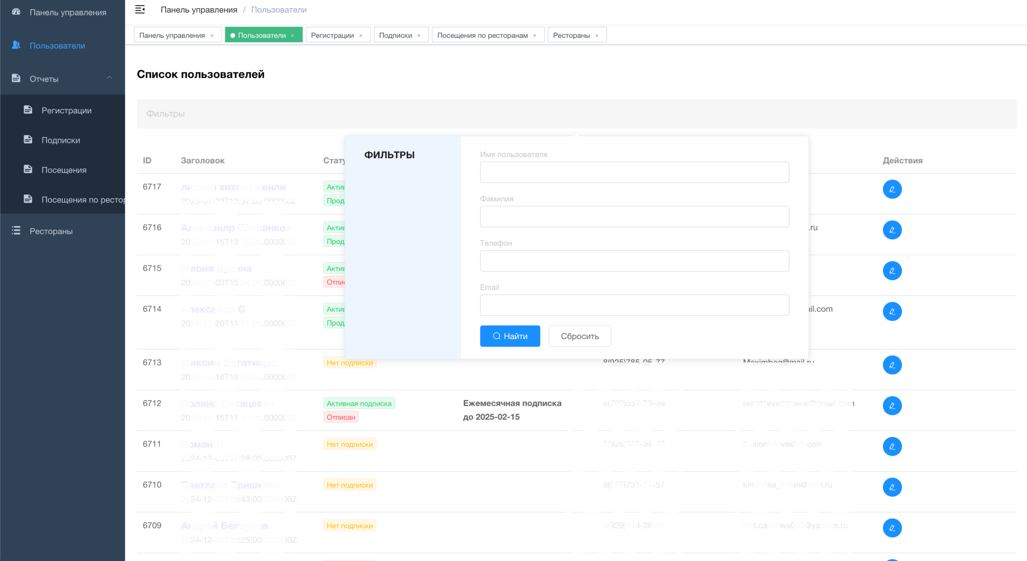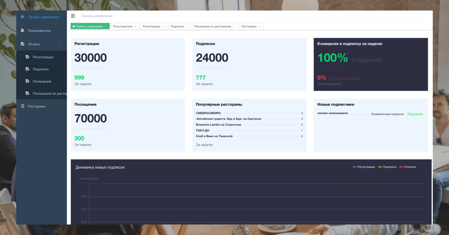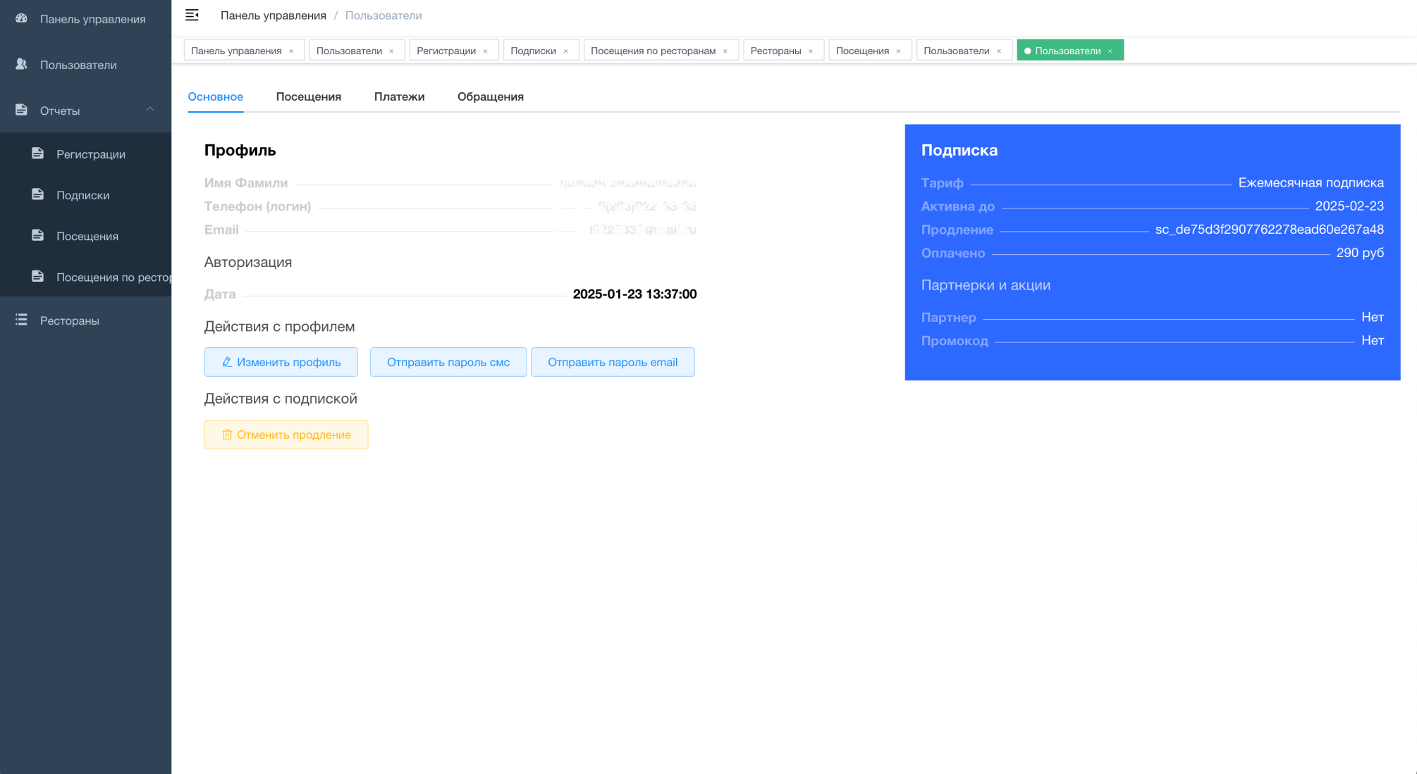 - быстрое и простое управление пользователями (отправка нового пароля, блокировка, активация и продление подписки, просмотр информации о сделанных платежах)