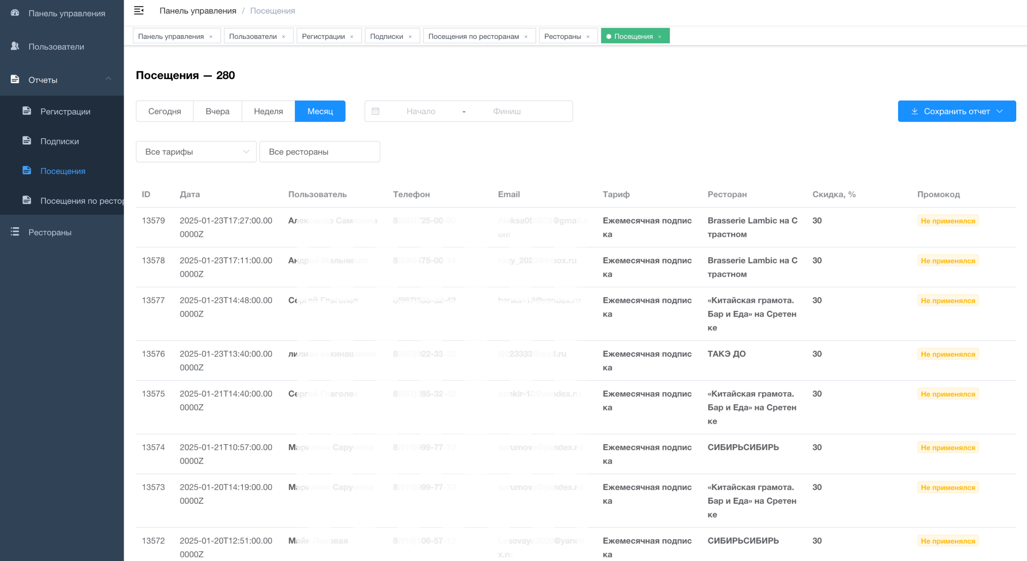 - формирование отчетов
