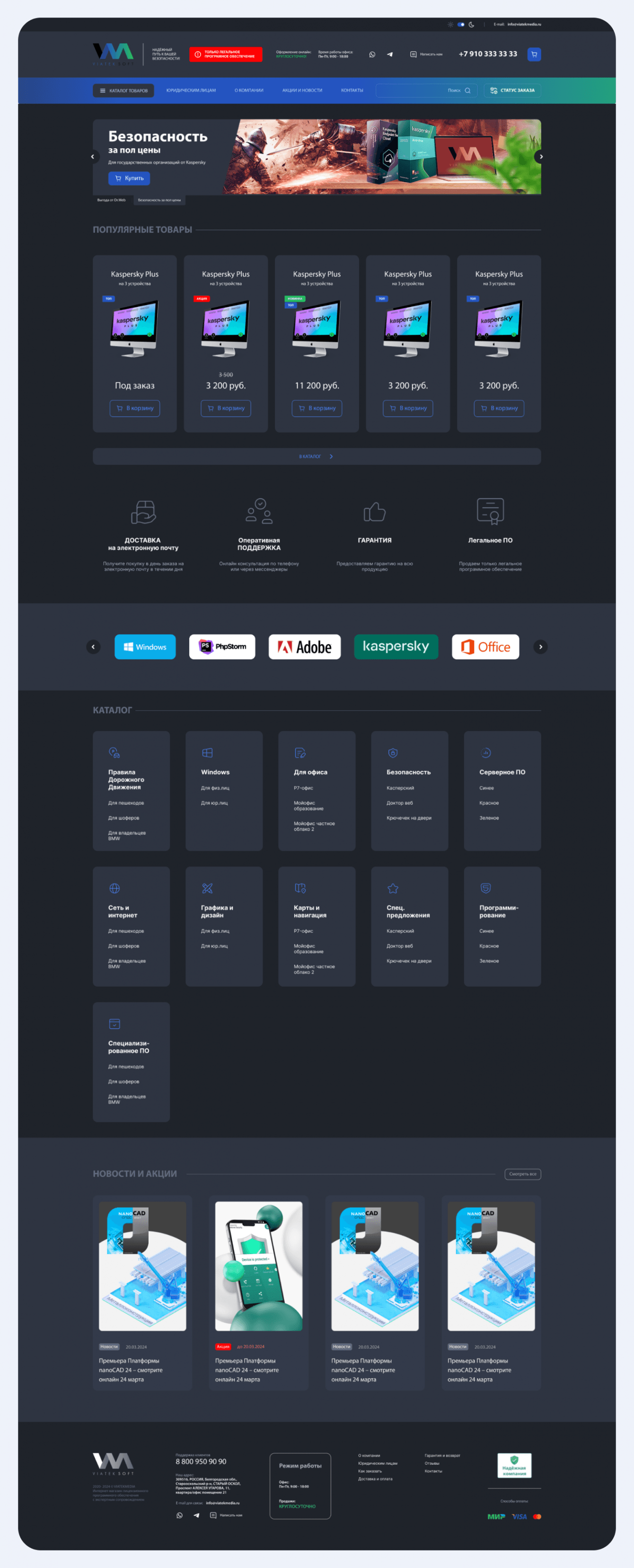 Нарисовать необычный и современный дизайн для интернет-магазина по продаже программного обеспечения. При этом требовался интерфейс с удобным каталогом и навигацией.