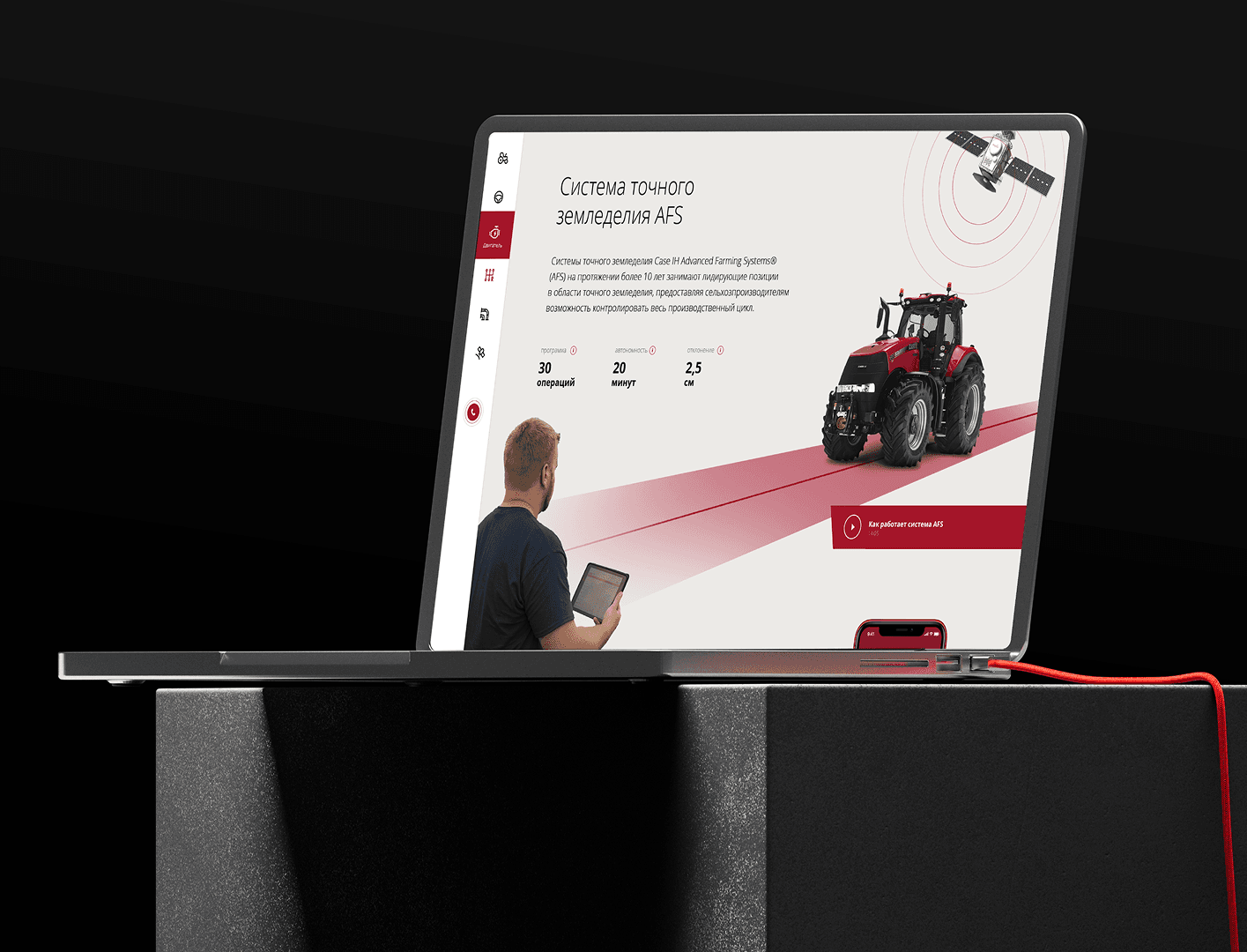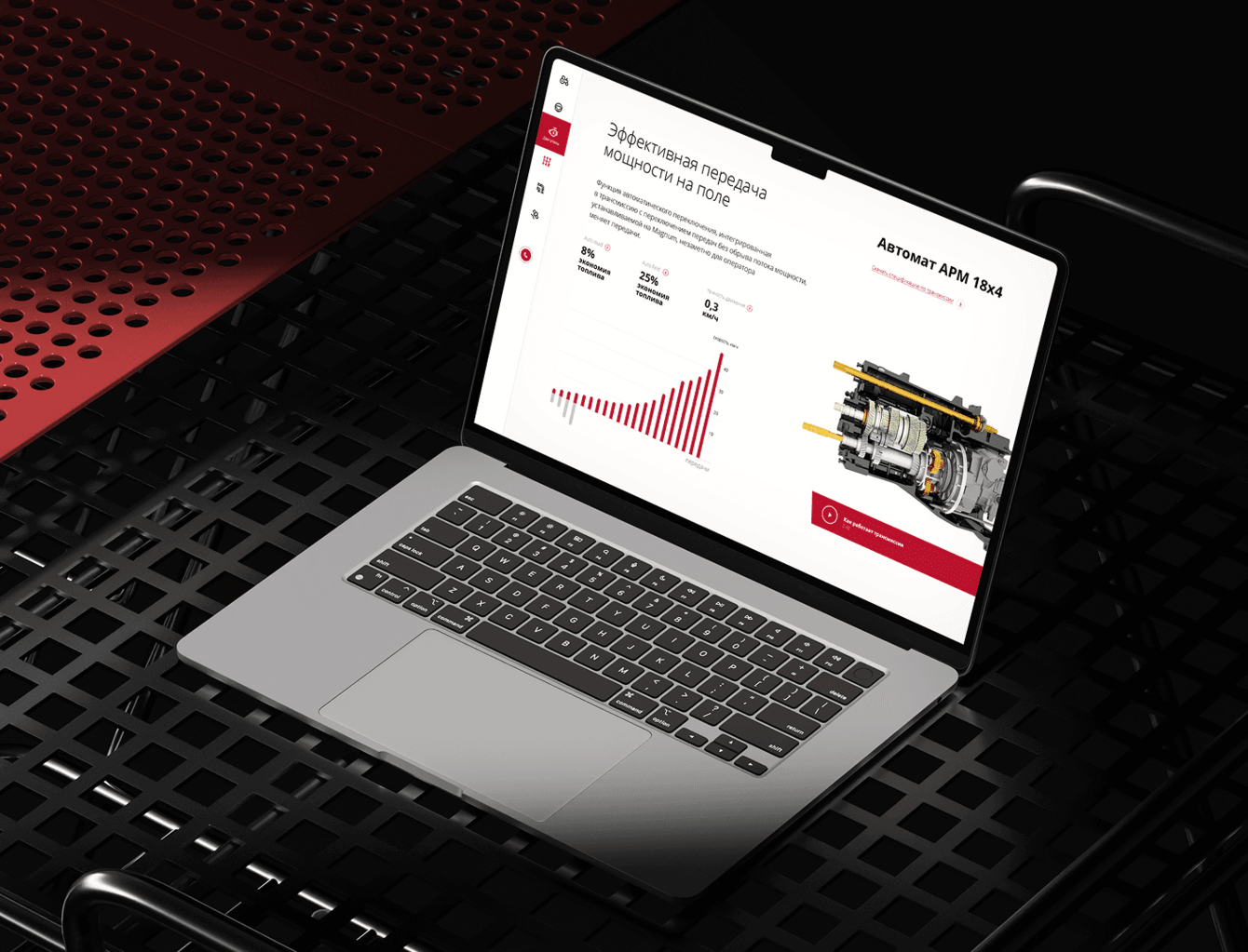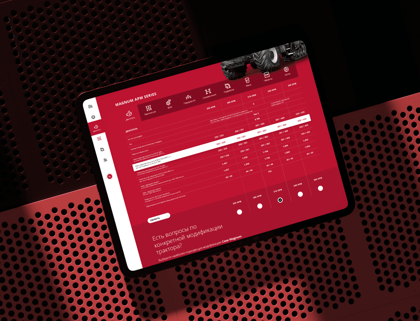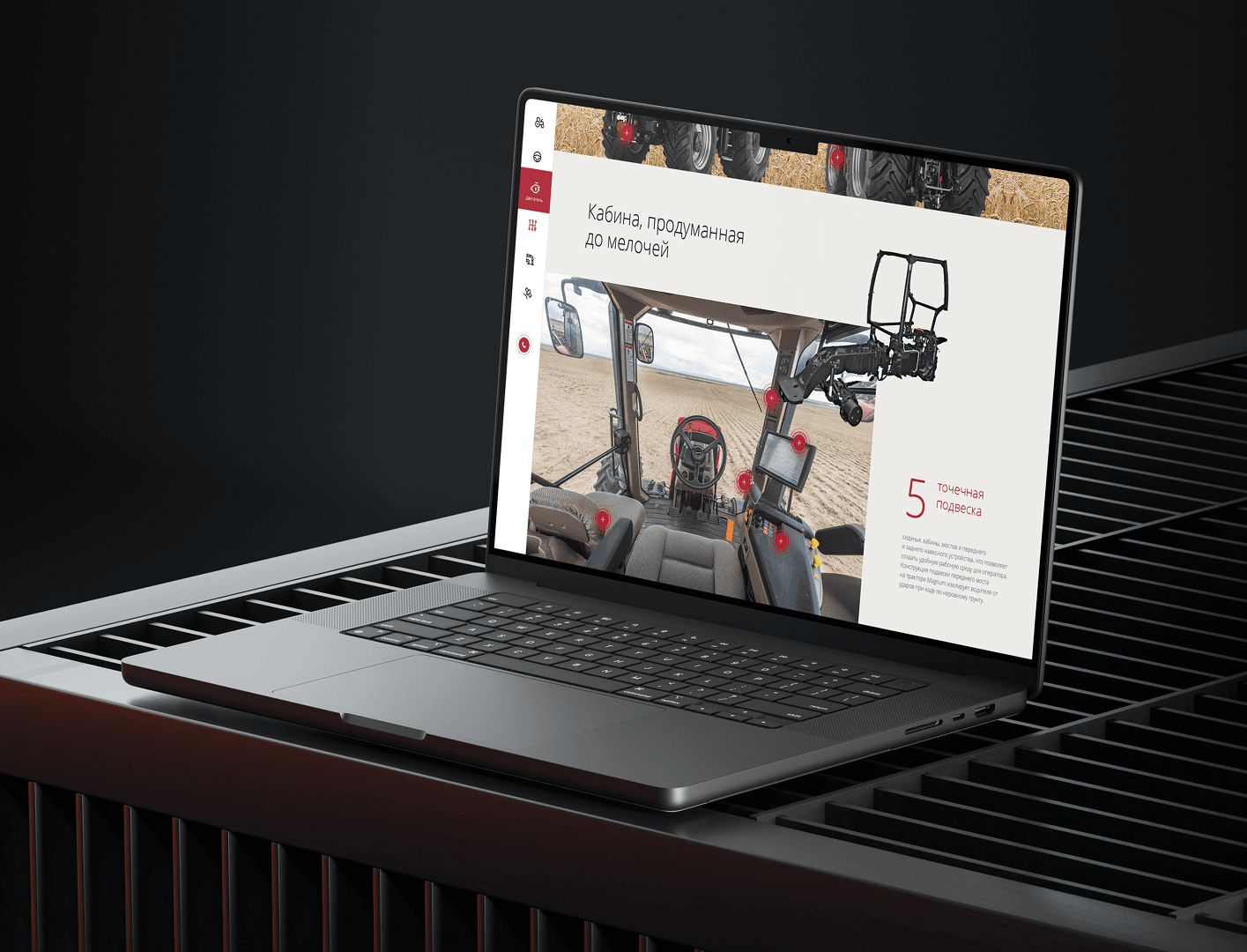 Разработать дизайн для сайта, посвящённого многоцелевому трактору MAGNUM от CASE IH. Сайт должен был подчеркнуть преимущества трактора, такие как мощный двигатель, универсальность и надёжность, и обеспечить удобство взаимодействия для потенциальных клиентов.