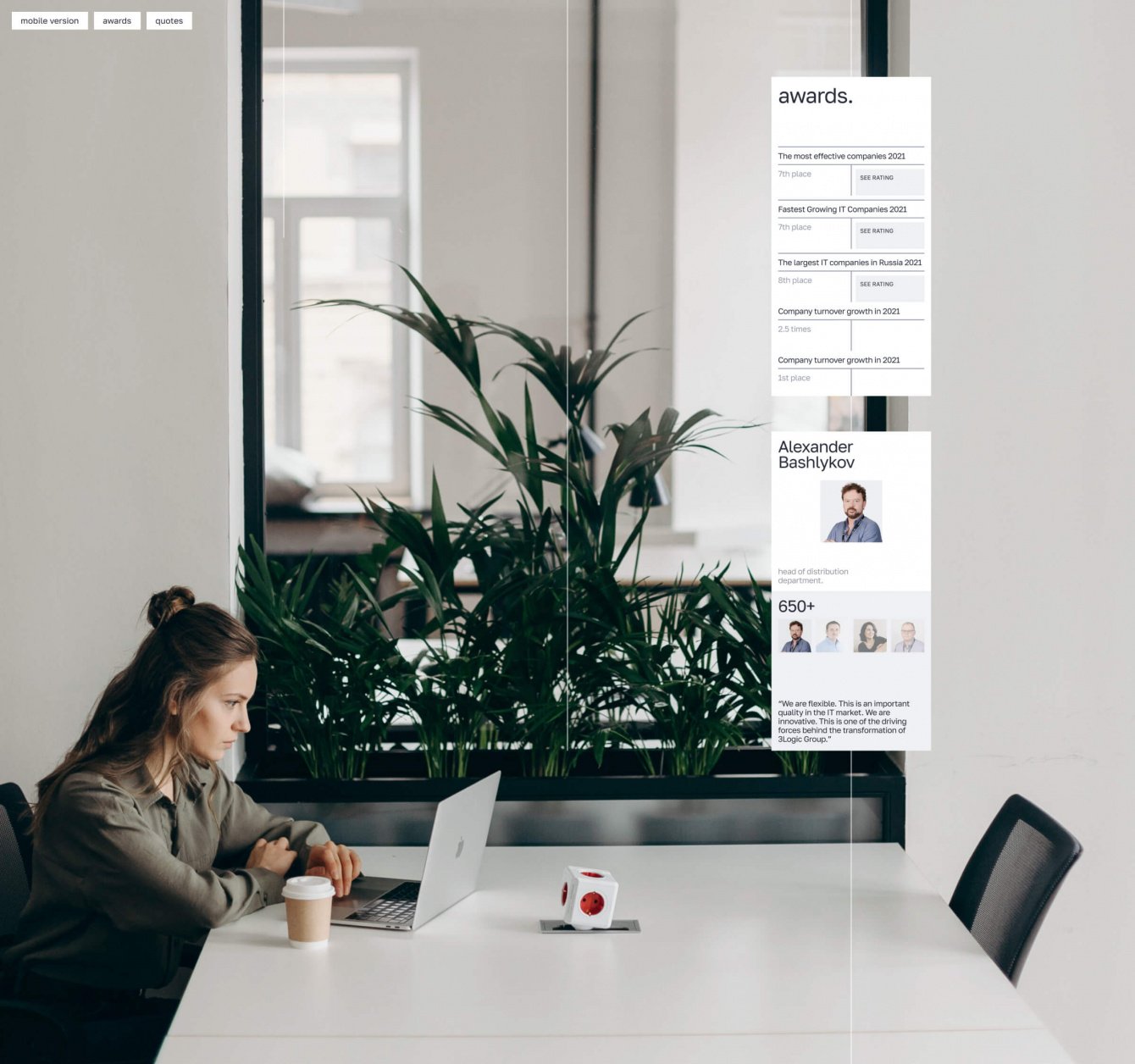Еще одна приятная деталь проекта - компания обратилась в “AVA” именно за нашим уникальным дизайном и стилем. Минимализм с крутыми фишками - это как раз к нам. Разработкой будут заниматься штатные сотрудники “3 LOGIC”.