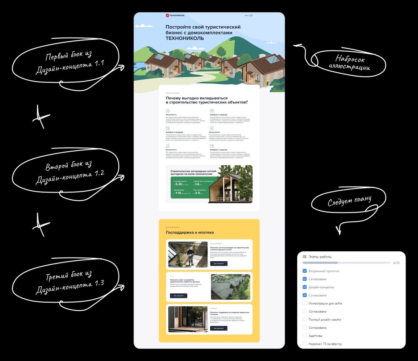 Завершили разработку дизайн лендинга с иллюстрациями для спецпроекта «Домокомплекты Технониколь», и сдали проект за 18 дней.