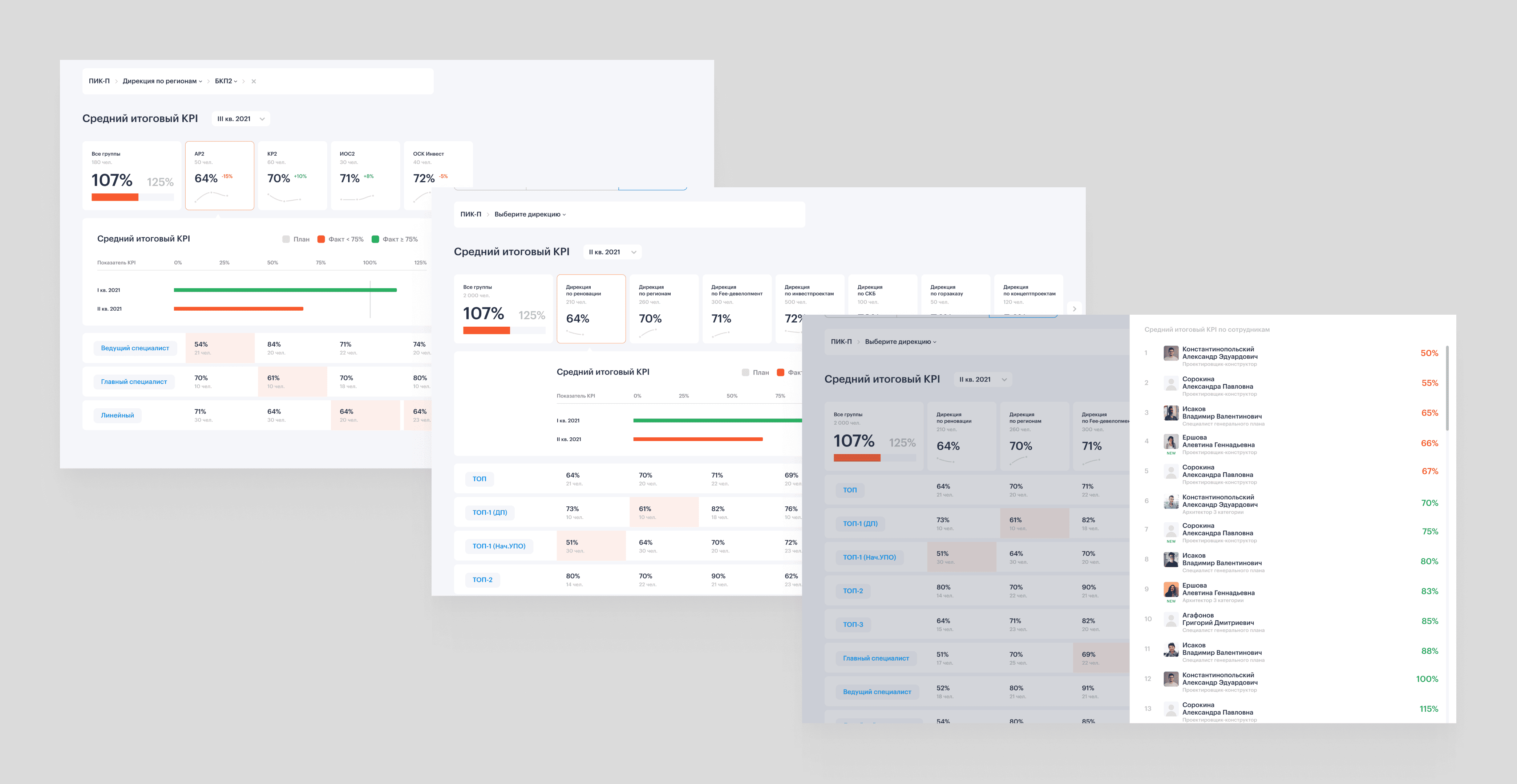 Разработать интерфейс внутреннего цифрового продукта для управления сотрудниками, проектами и задачами в рамках группы компаний ПИК.