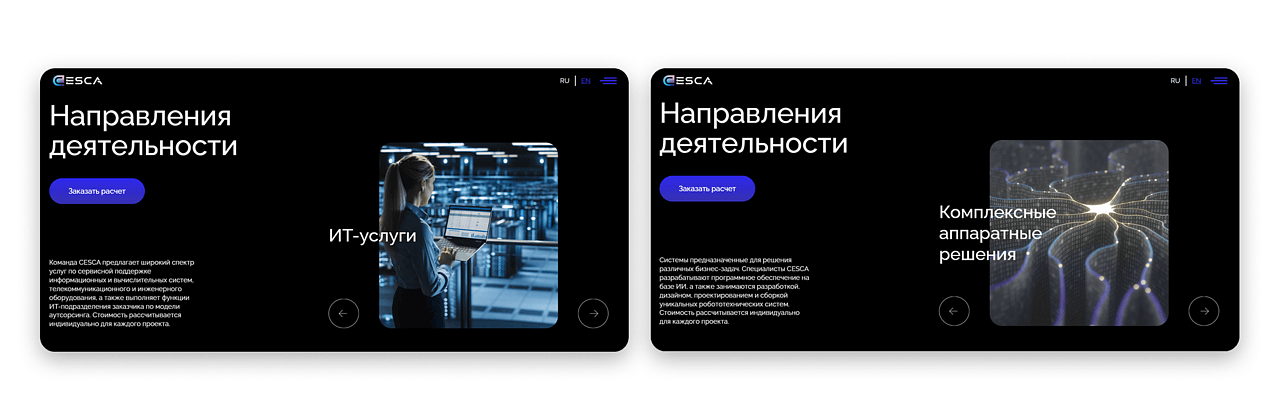 Получился современный, информативный и удобный сайт, который четко структурирован. Он эффективно представляет услуги компании CESCA, повышая привлекательность и доверие со стороны потенциальных клиентов, а также способствует увеличению продаж и укреплению позиции на рынке ИТ-услуг.