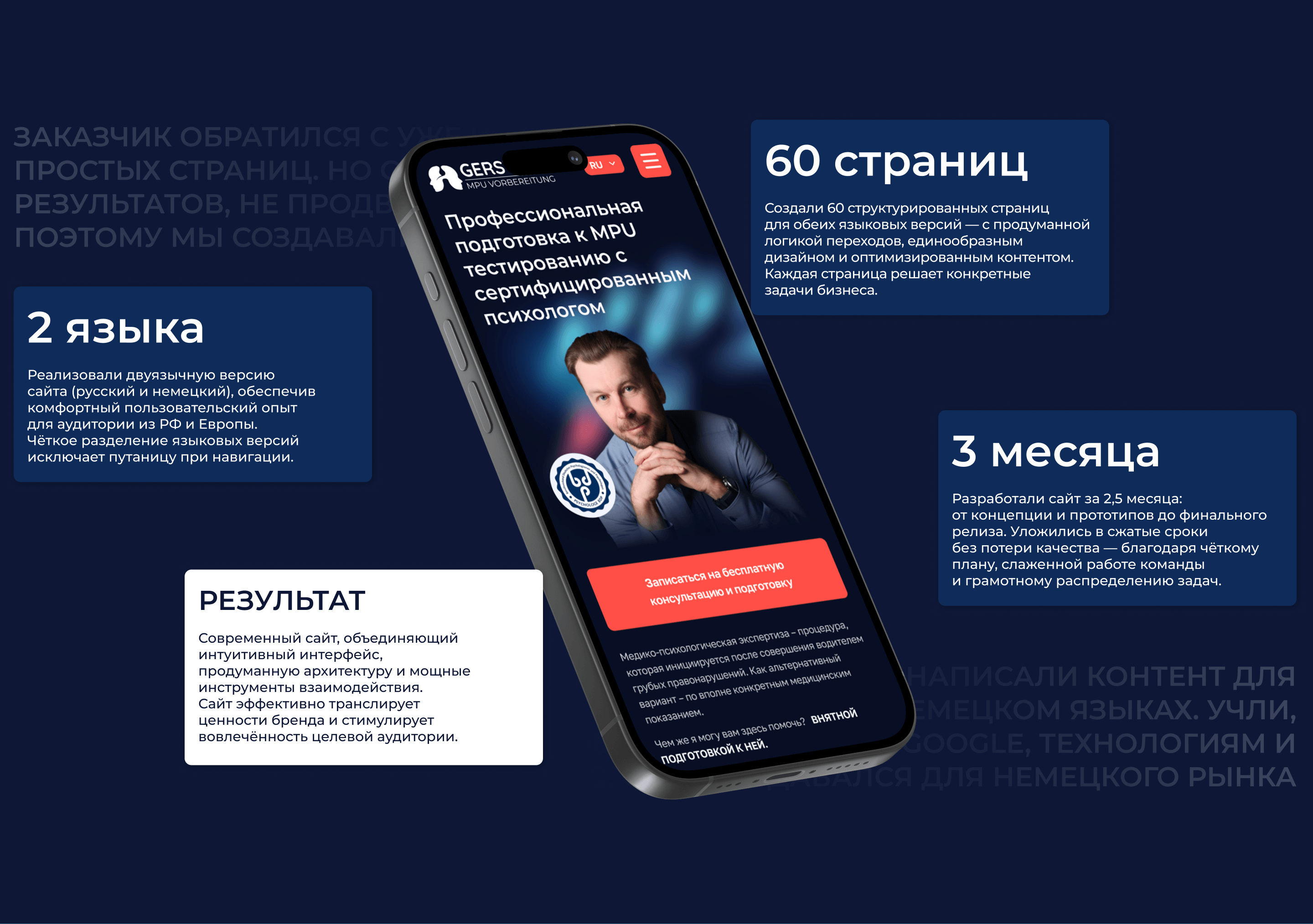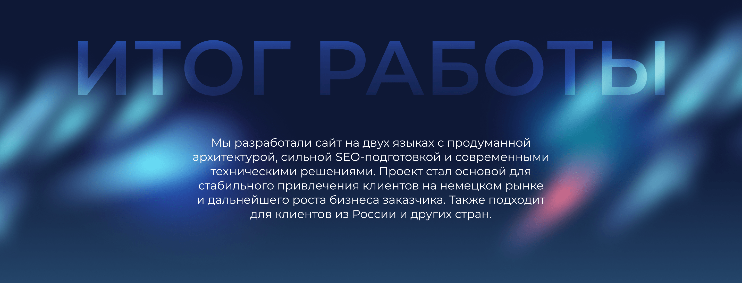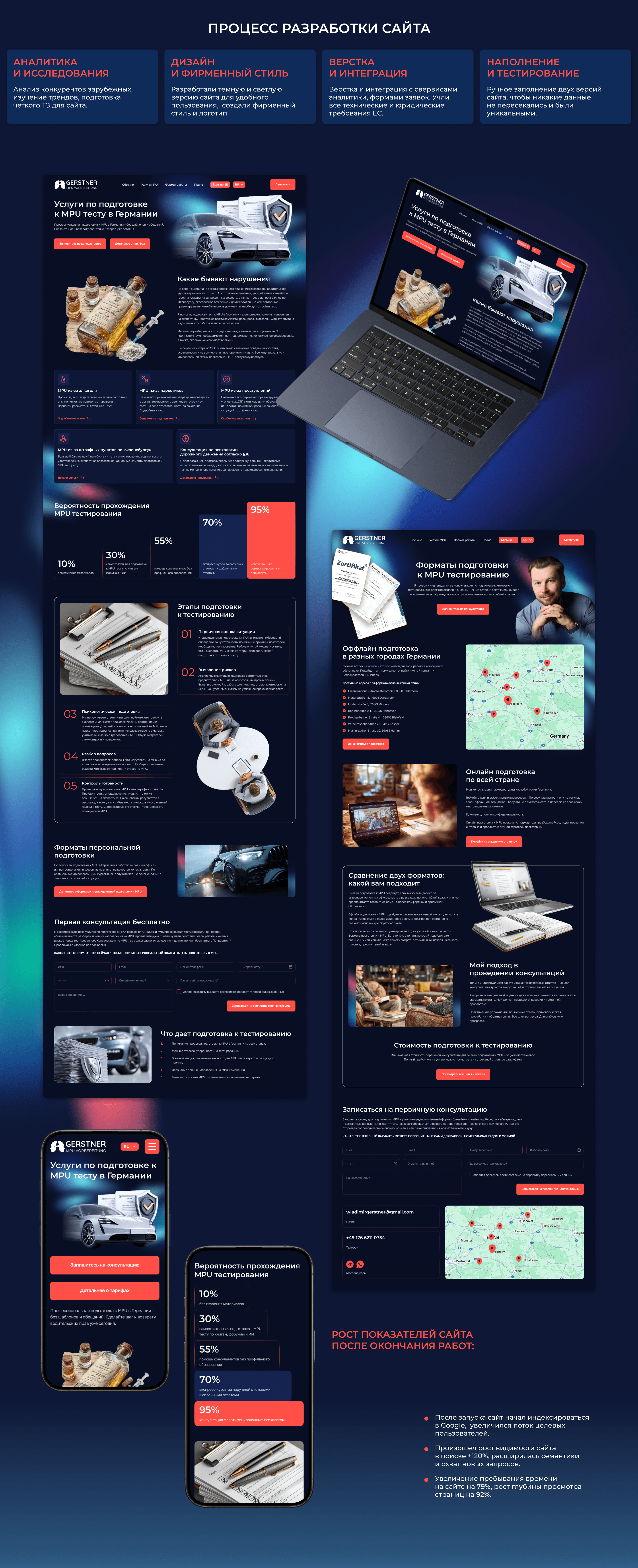 В итоге мы разработали сайт на двух языках с продуманной архитектурой, сильной SEO-подготовкой и современными техническими решениями. Проект стал основой для стабильного привлечения клиентов на немецком рынке и дальнейшего роста бизнеса заказчика. Также подходит для клиентов из России и других стран.