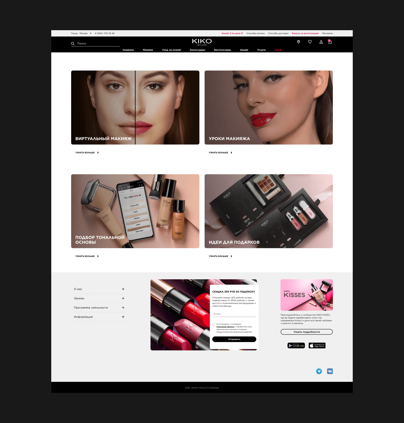 Помимо запуска интернет-магазина Kiko Milano с нуля, в рамках работы над проектом было проведено несколько сложных интеграций, например, с решением Tempoline. Это позволило нам владеть информацией о количестве актуального товара на складе, а также отправлять и получать данные по заказам. Специалисты Progressive Media внедрили программу лояльности Kiko Kisses.