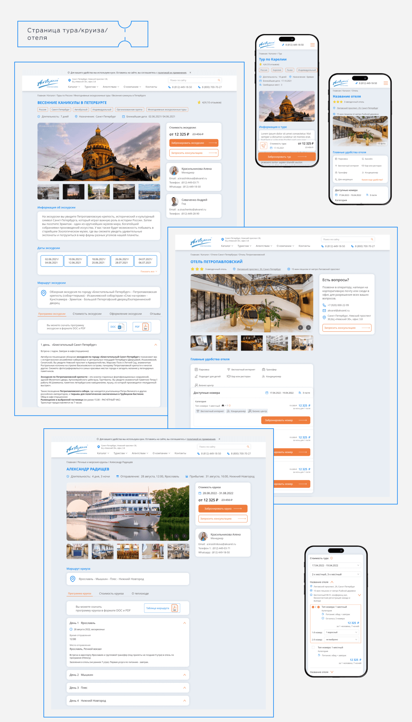 - Разработан функционал динамического создания страниц каталога туров, круизов и отелей.