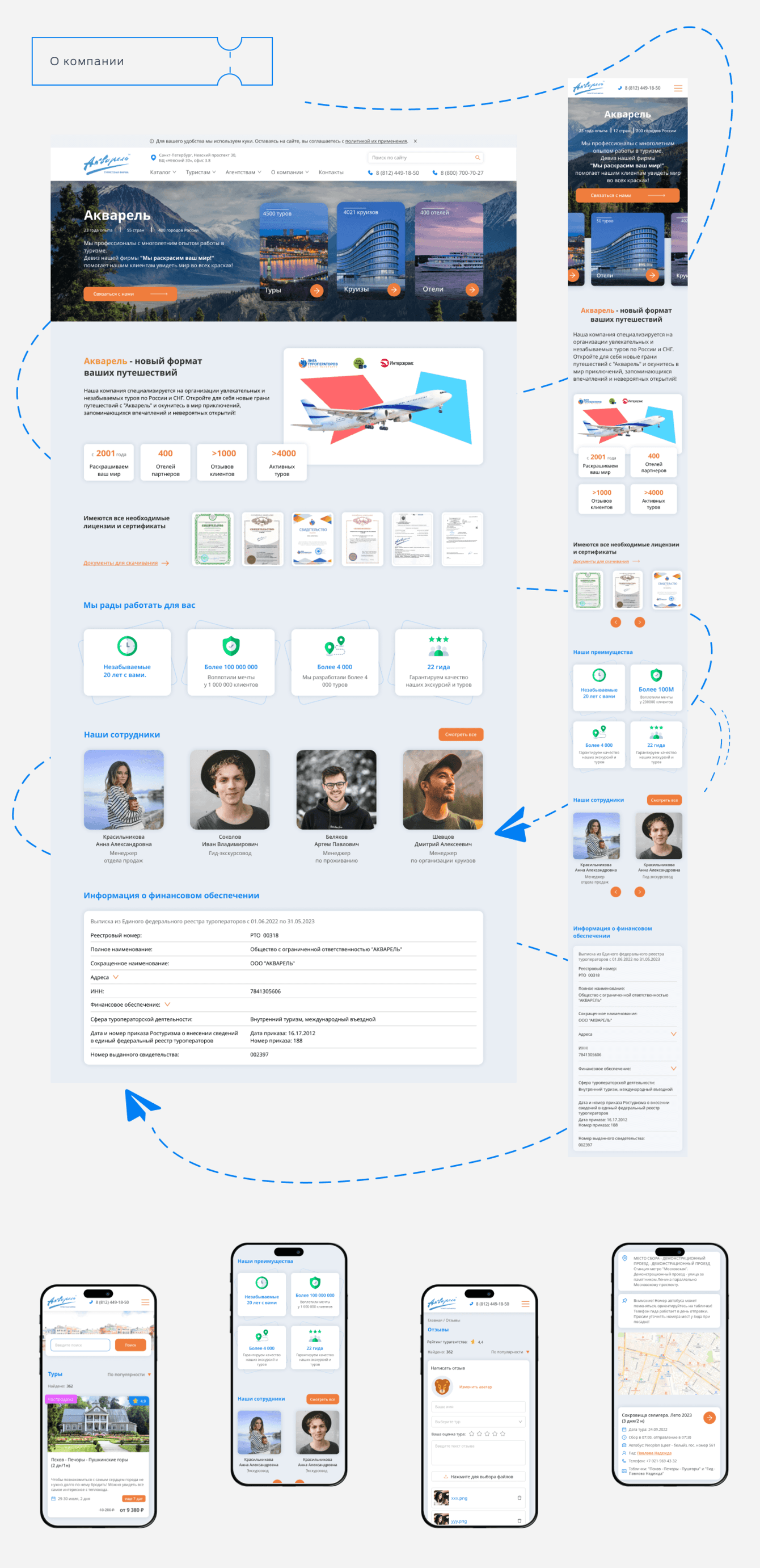 Компания Акварель, основанная в 2001 году, специализируется на путешествиях по России, Европе и всему миру. С ростом объема заказов компания столкнулась с ограничениями в масштабировании бизнеса. Нам предложили разработать новый сайт компании для повышения качества предоставляемых клиентам услуг.
