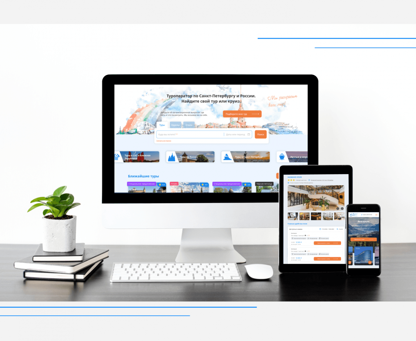 Перед нами стояла задача создать новый глобальный канал продаж для непосредственного взаимодействия с клиентами через Интернет. Нам необходимо было спроектировать и реализовать сайт с онлайн-бронированием туров, отелей, круизов, с удобной системой управления контентом и онлайн-оплатой, сохраняя основной стиль старого сайта и SEO-позиции. Также требовалось обеспечить интеграцию с внутренней CRM-системой так, чтобы исключить дублирование и ошибки, упростить работу и продажи.
