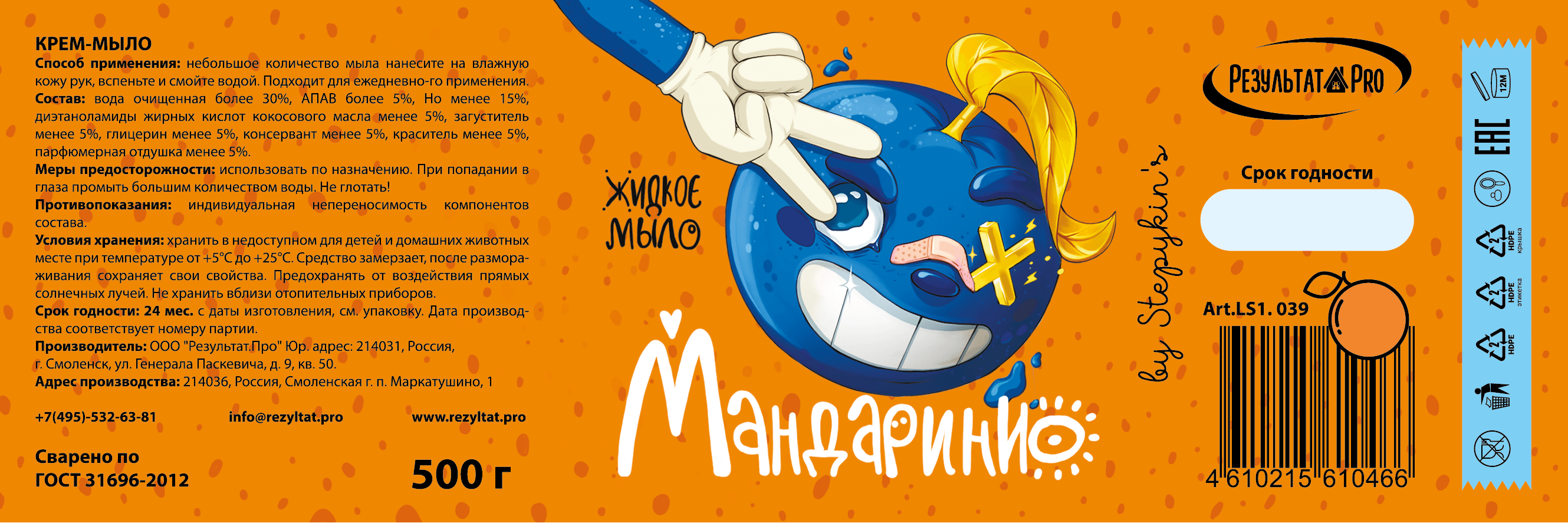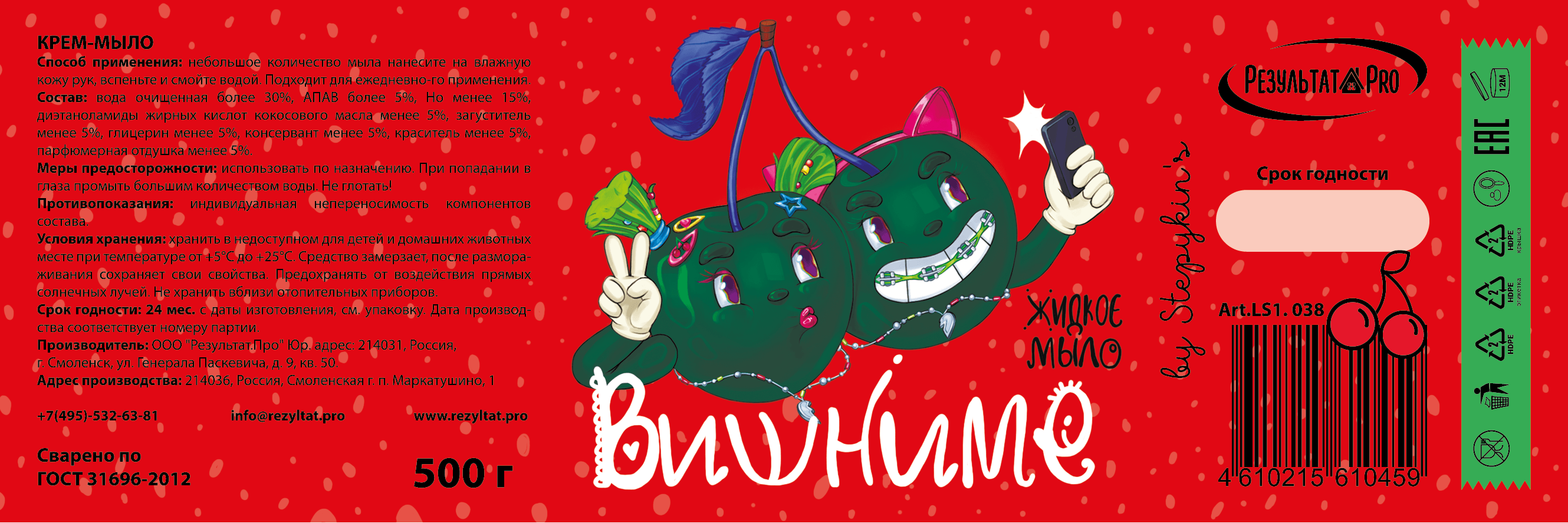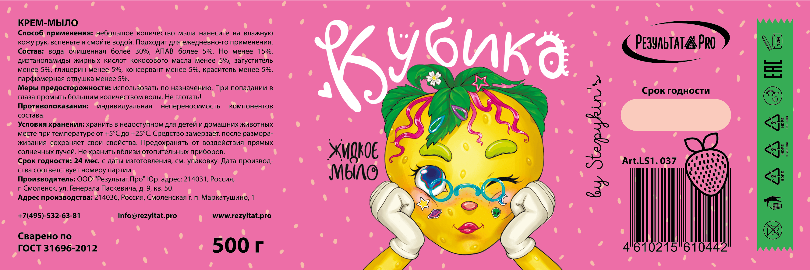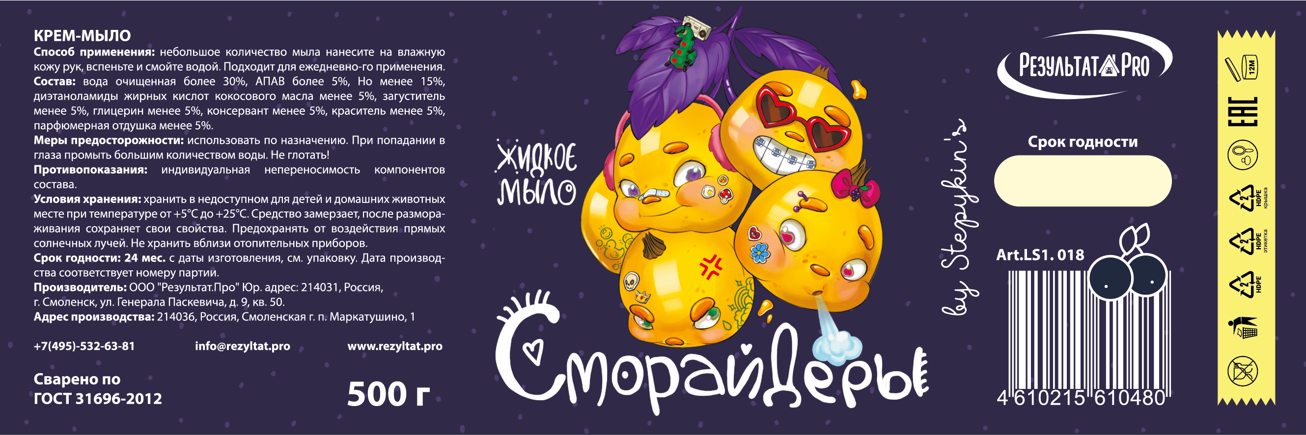 Разработать сочные, яркие этикетки для жидкого мыла.