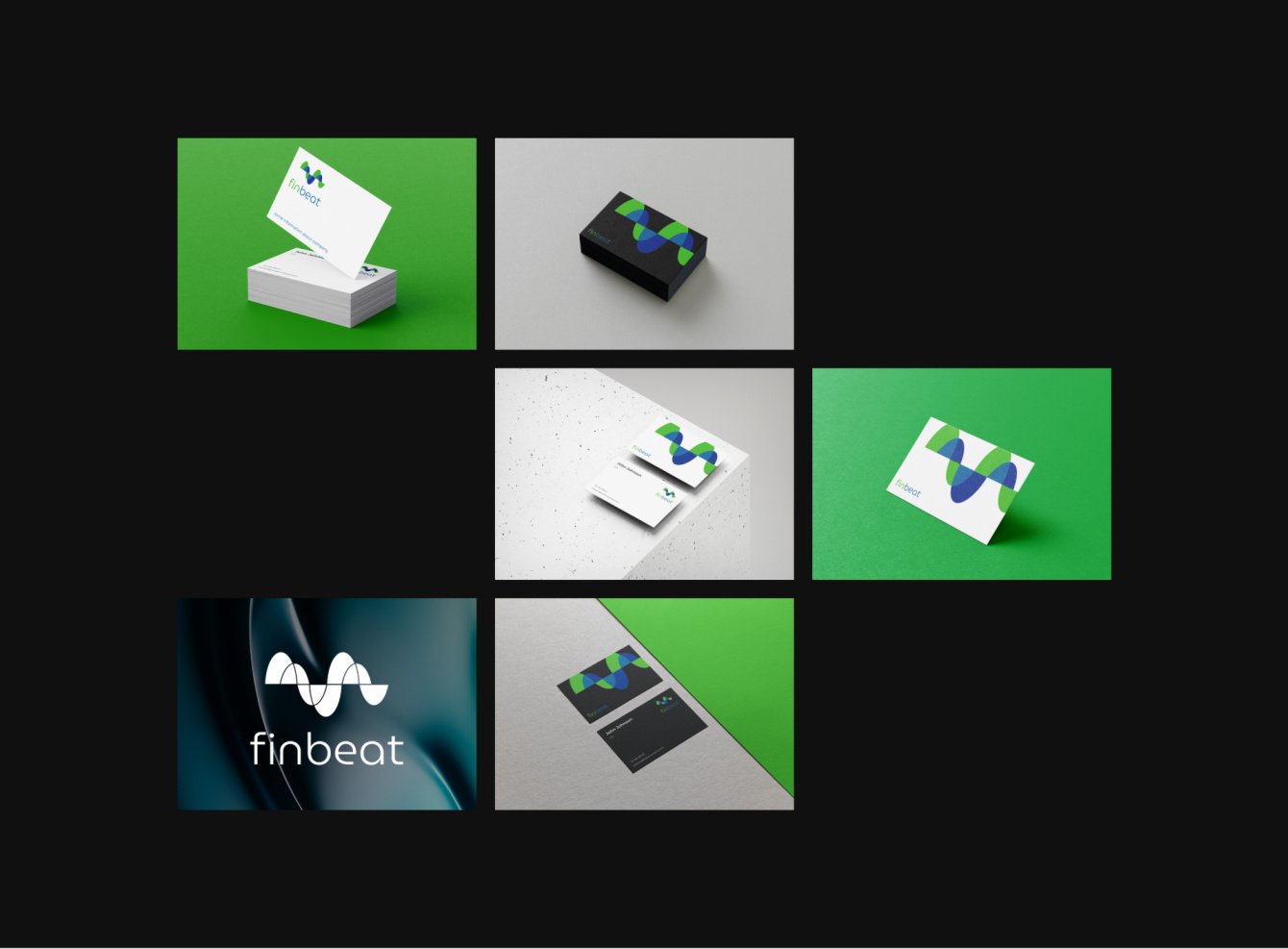 После того как были определены логотип, цветовая палитра и типографика, мы приступили к разработке дизайна различных материалов для Finbeat: веб-сайта, визиток и других рекламных материалов.