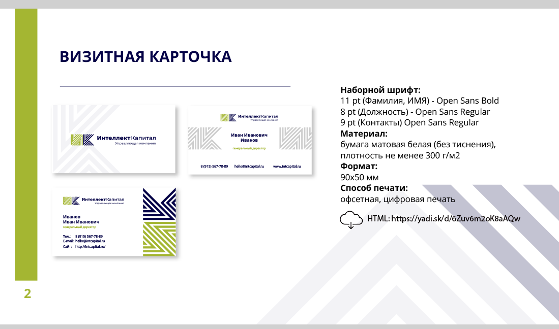 В результате мы упаковали все наработки в стильный брендбук компании. Благодаря этому компания сможет эффективно развивать бренд и формировать положительный образ компании у потребителей.