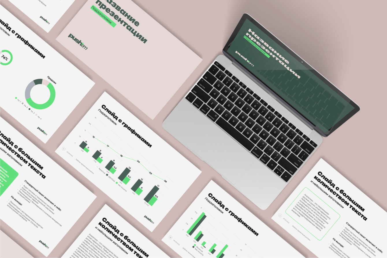 Изначально проект носил название Push Them, однако в процессе разработки фирменного стиля мы предложили сократить его до Push ’em. Обновлённое имя точнее отражает характер агентства — готовность к риску и смелым креативным решениям.