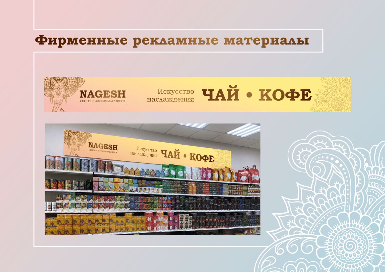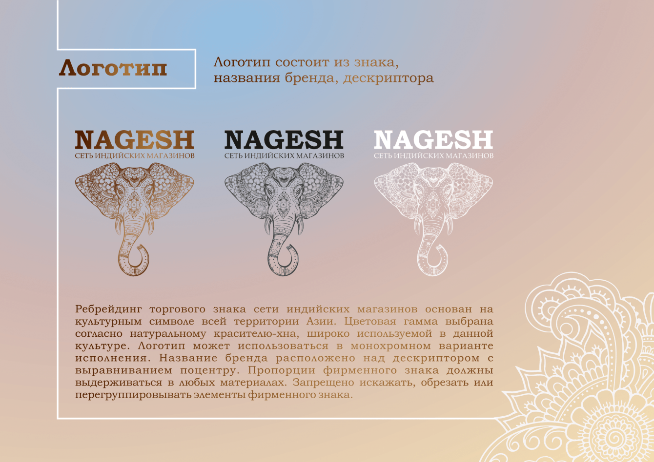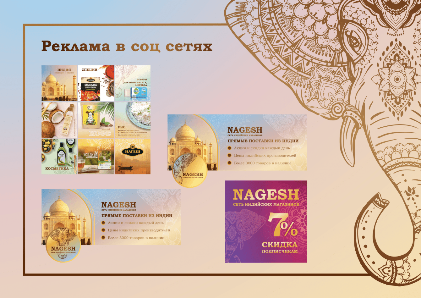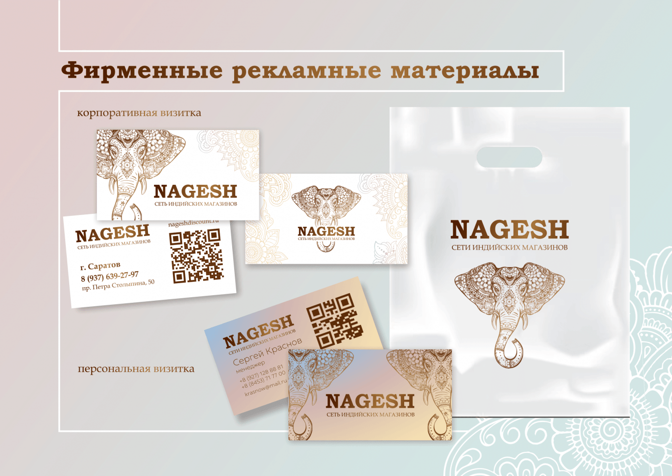 Цели: Основной целью проекта был ребрендинг торговой марки сети индийских магазинов NAGESH, включая разработку логотипа и фирменного стиля.