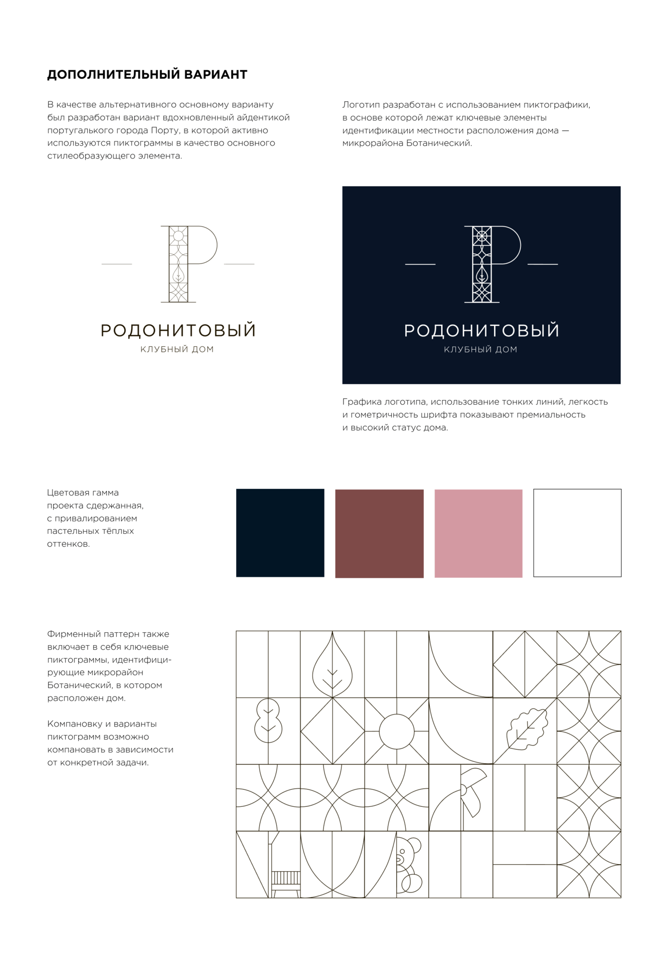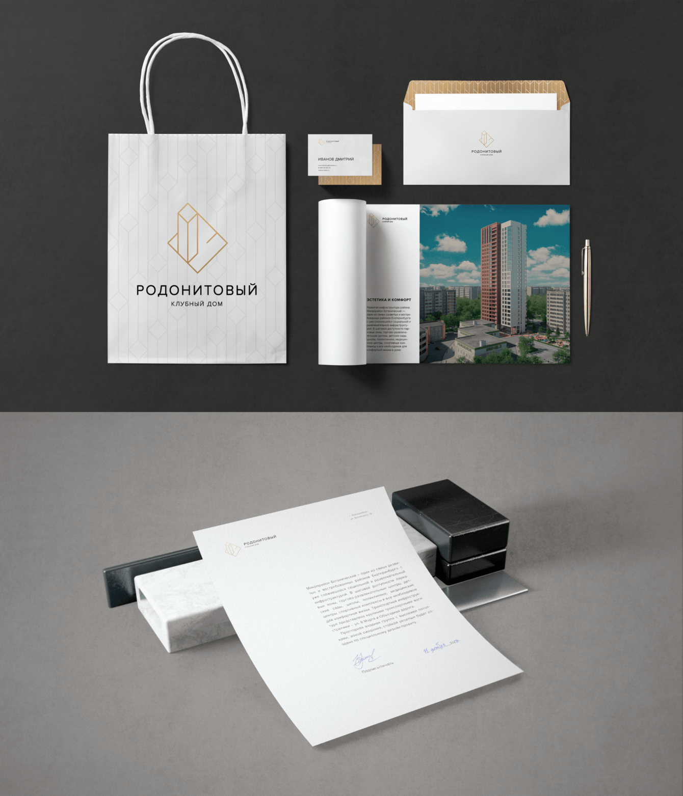 Разработанная айдентика для клубного дома в микрорайне Ботанический удовлетворяет всем изначально поставленным закачиком задачам. Концептуально-графическое решение основного и дополнительного вариантов айдентики выполняют свою коммуникативную функцию, передавая исключительный и премиальный статус дома.