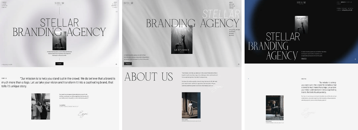 В результате проекта был разработан сайт брендинговой компании Stellar, а также их корпоративный стиль, лого и бренд айдентика, которые выделяют компанию среди конкурентов благодаря неповторимой концепции, отраженной также в названии компании.