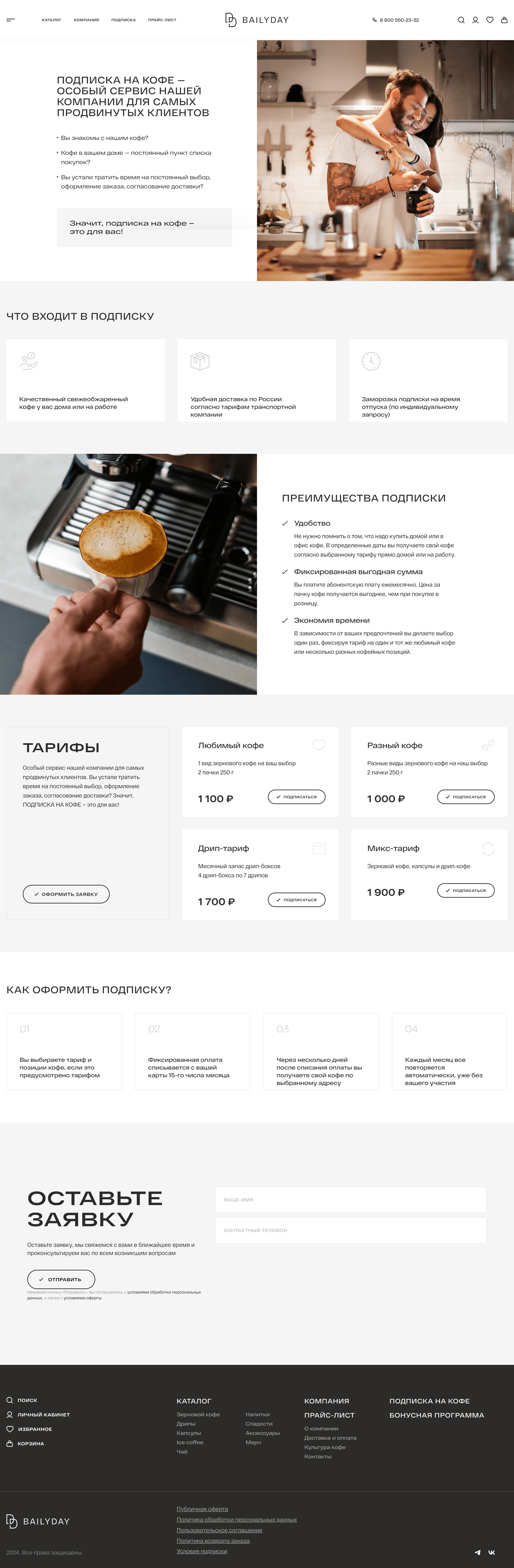 Создать функционал ежемесячной подписки на товар для сайта bailyday.ru