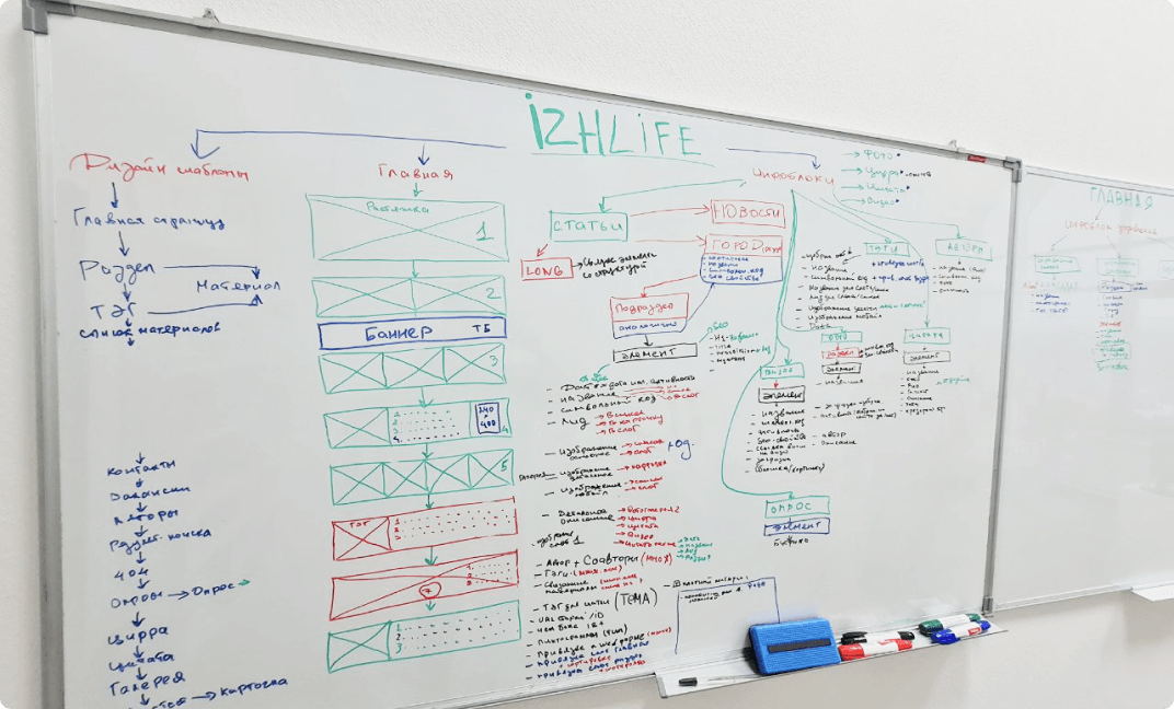 В рамках разработки технического задания мы сформировали все взаимосвязи информационных блоков сайта