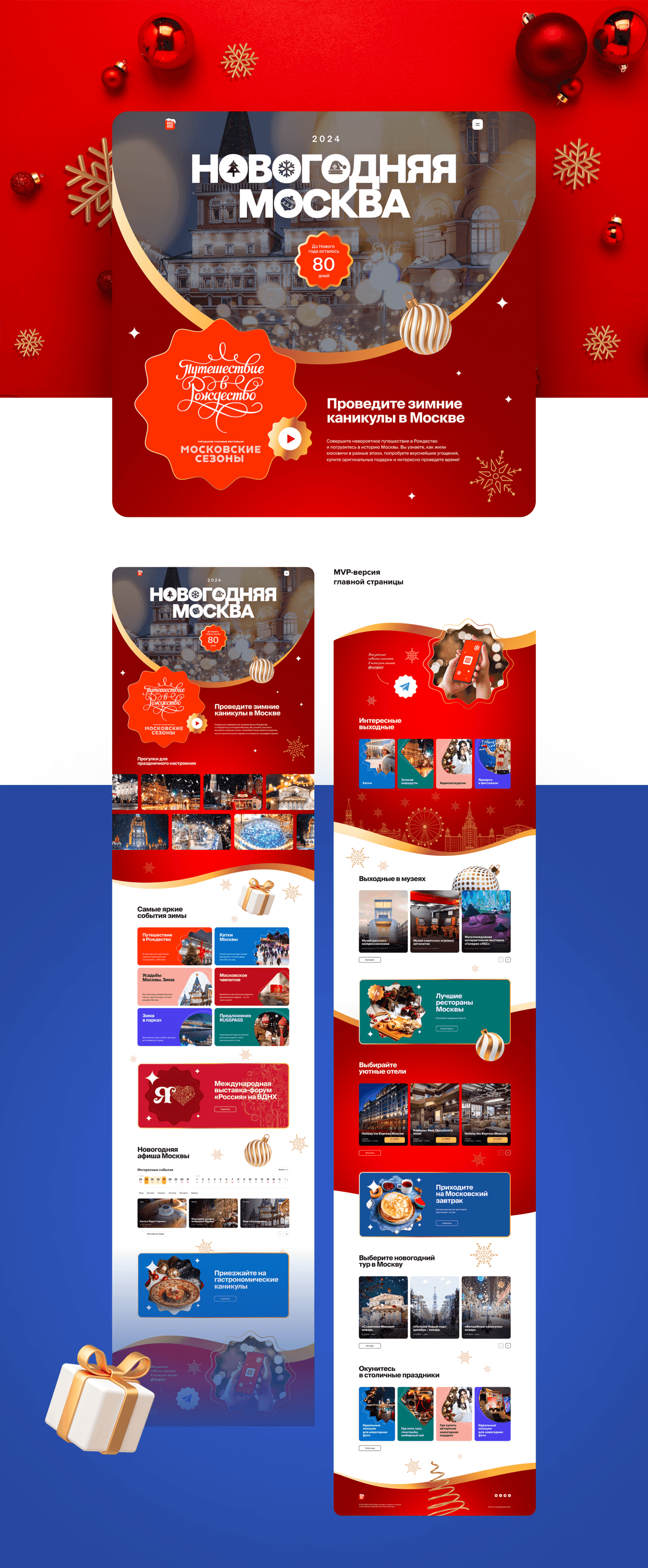 Целью разработки новогоднего сайта RUSSPASS было создание площадки, которая помогала бы москвичам и гостям столицы удобно и эффективно спланировать свое времяпрепровождение на праздничные каникулы.