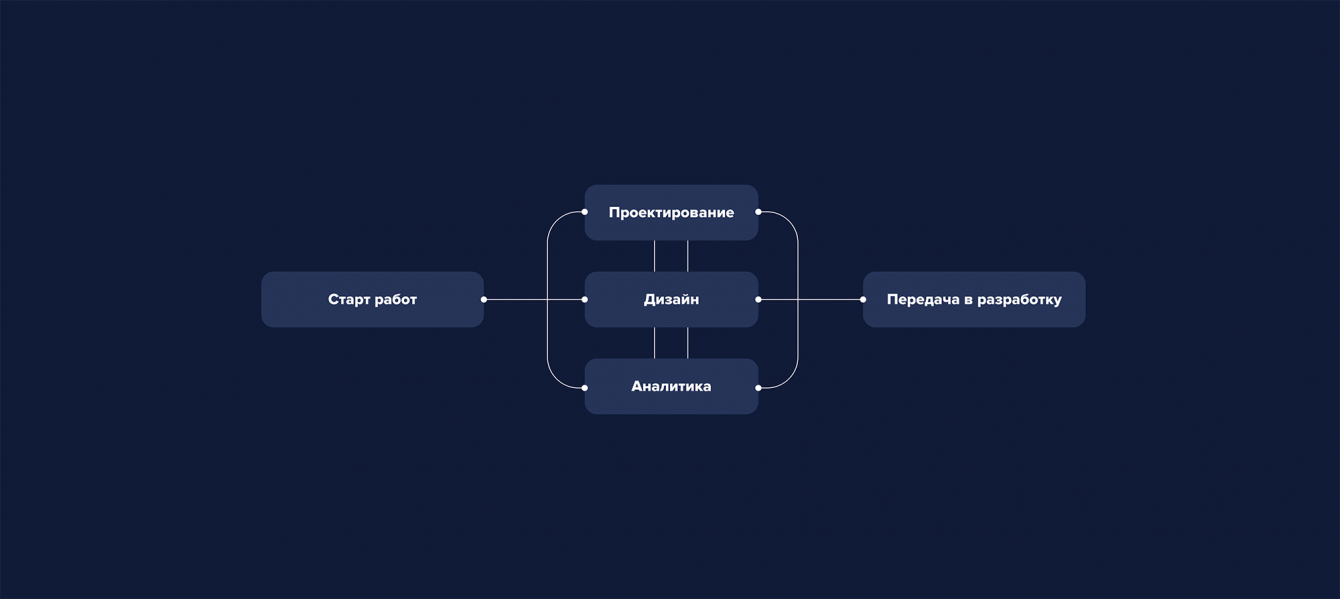 При работе над проектом мы отошли от классической поэтапной разработки, совместив этапы проектирования, дизайна и аналитики. Отдельным крупным блоком работ было создание нескольких разноплановых дизайн-концепций.