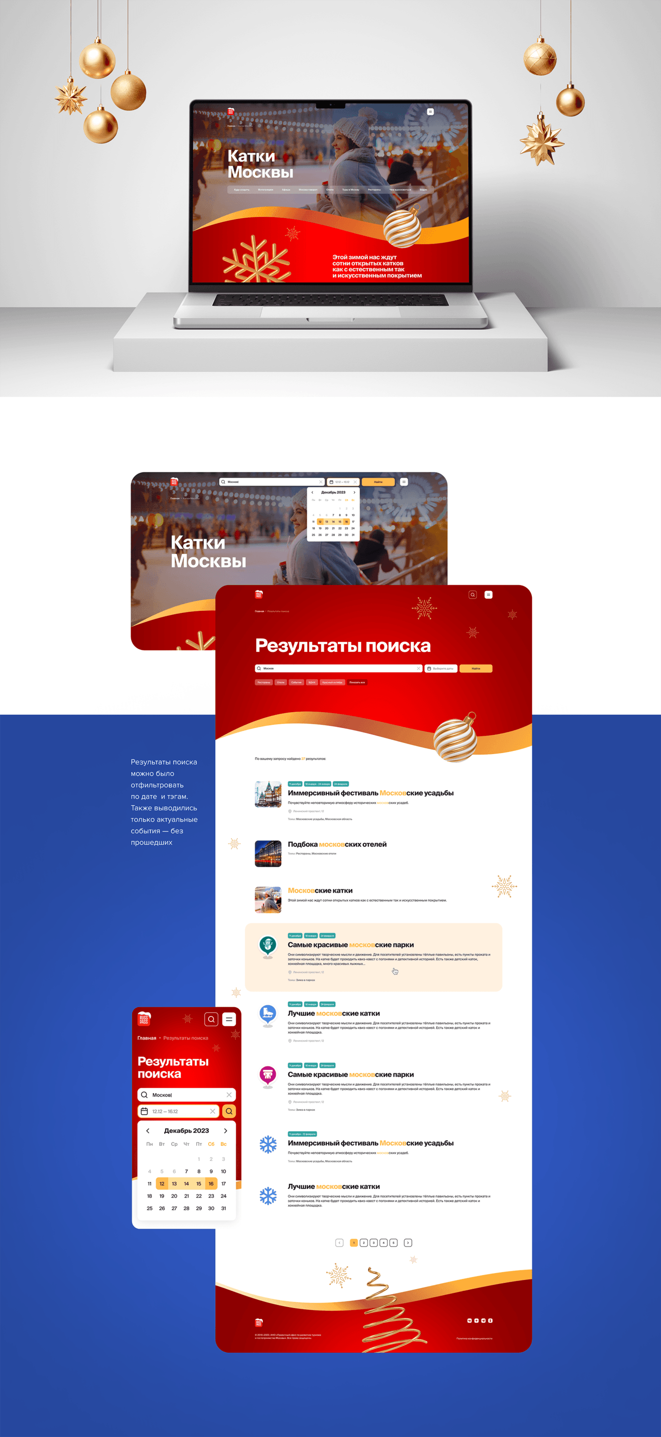 Целью разработки новогоднего сайта RUSSPASS было создание площадки, которая помогала бы москвичам и гостям столицы удобно и эффективно спланировать свое времяпрепровождение на праздничные каникулы.