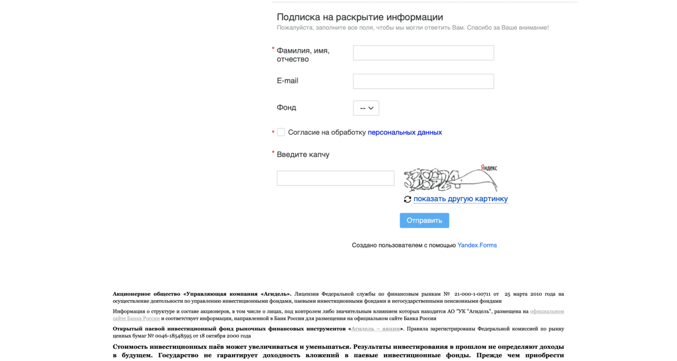 Компания «Агидель» располагает профессиональными специалистами и технологиями для управления активами паевых и акционерных инвестфондов. На старте знакомства у клиента не было даже сайта. Компания развивалась и получала все больше места на рынке, поэтому «Агидель» заказала у нас комплексную разработку с последующим продвижением.