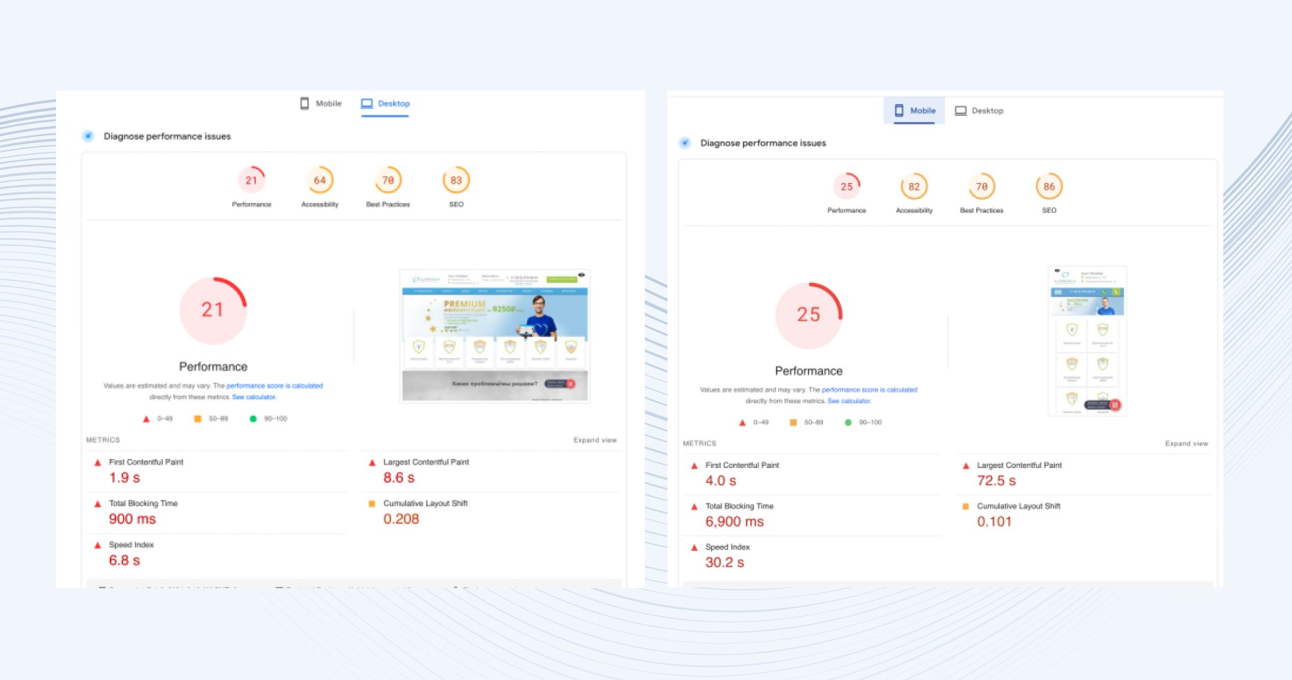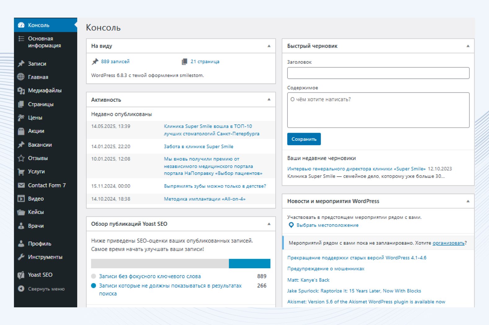 Старая версия WordPress и используемые плагины были устаревшими, что вызывало ошибки и снижало производительность. Поэтому было принято решение провести техническое обновление ядра сайта: