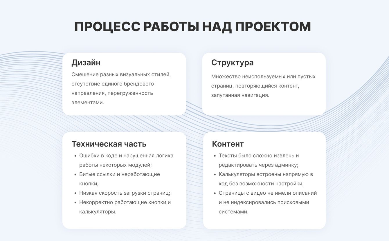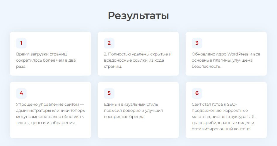 Это позволило увеличить видимость сайта в поисковых системах и сделать контент полезнее для пользователей.