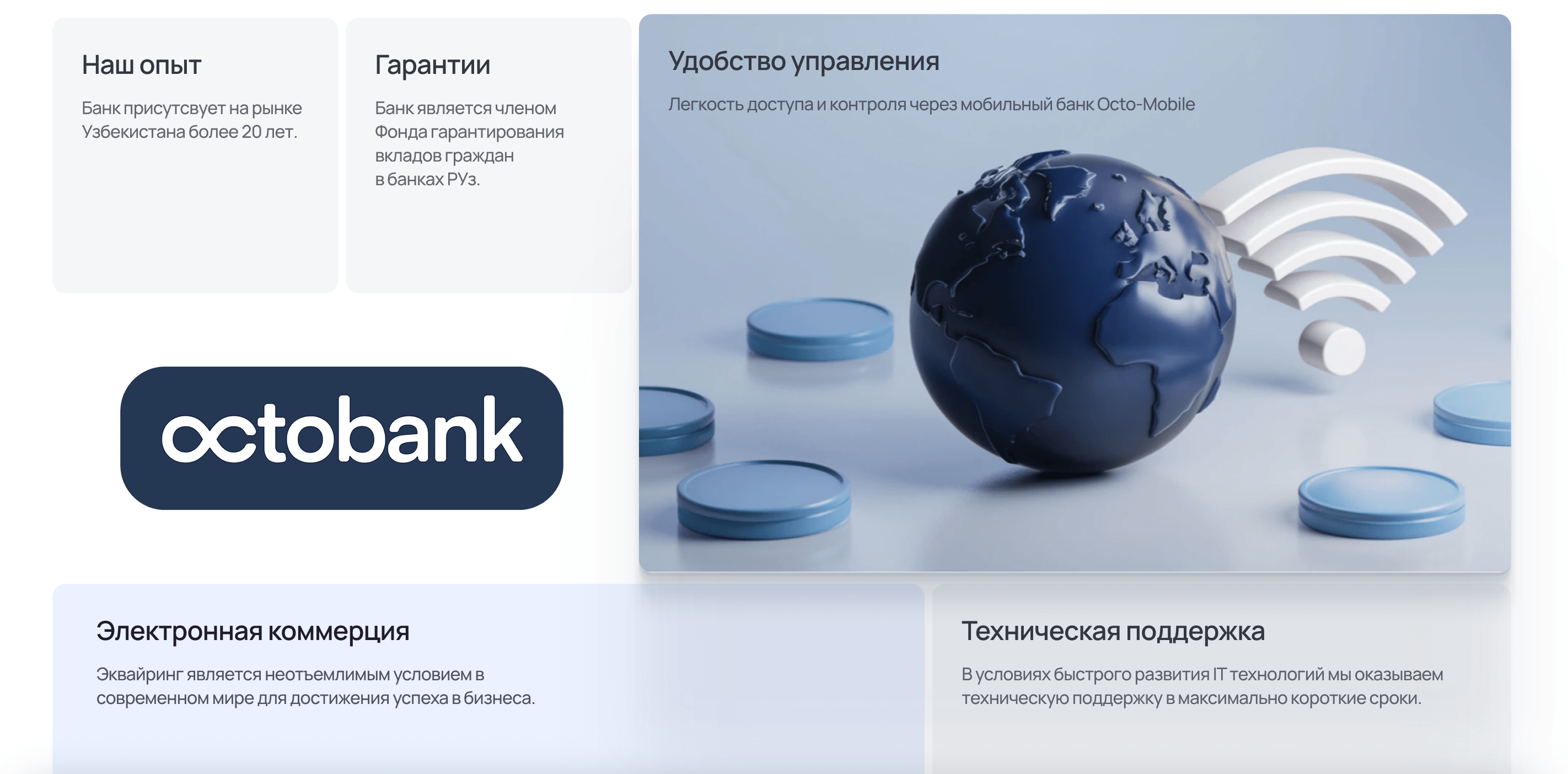 - Поддержка карточных операций и интеграций с VISA, HUMO, UZCARD.