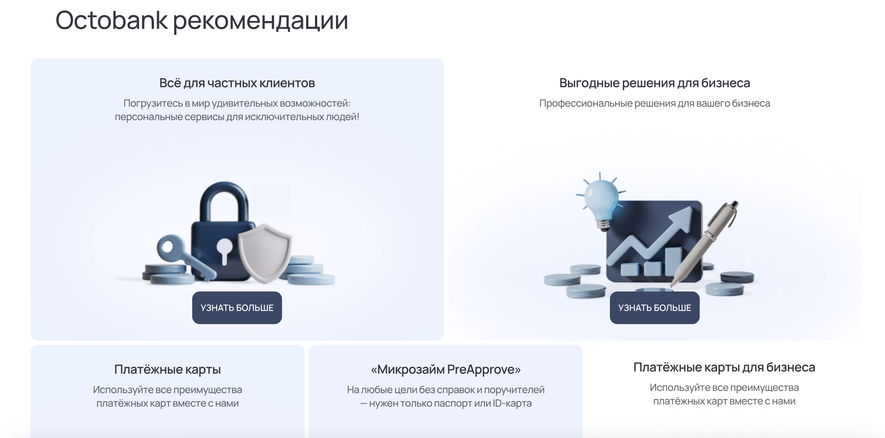 Окто Банк — универсальный финтех-сервис, предоставляющий клиентам широкий спектр банковских продуктов: от классических платежных решений до интеграций с криптопроектами и систем микрокредитования. Основная цель клиента — развитие цифровой экосистемы банка, повышение безопасности операций и удобства пользователей мобильного приложения.