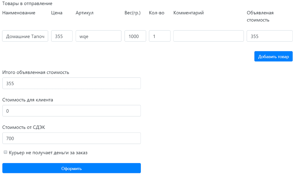 Расчет и оформление доставки на странице конкретной сделки в CRM Битрикс24;