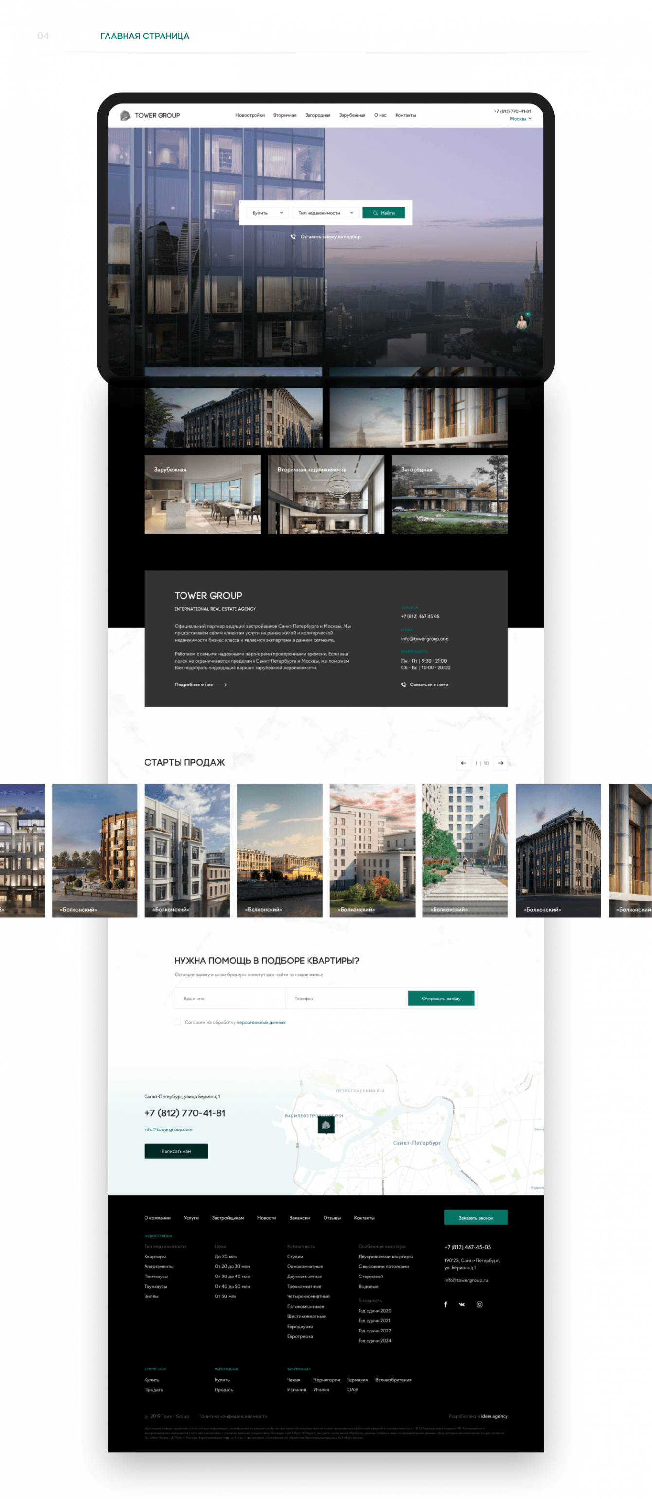 Разработать корпоративный сайт с каталогом всех предложений агентства. Проект должен отражать современный стиль и высокий уровень агентства. Также иметь удобный поиск, который позволит быстро найти интересующие предложения