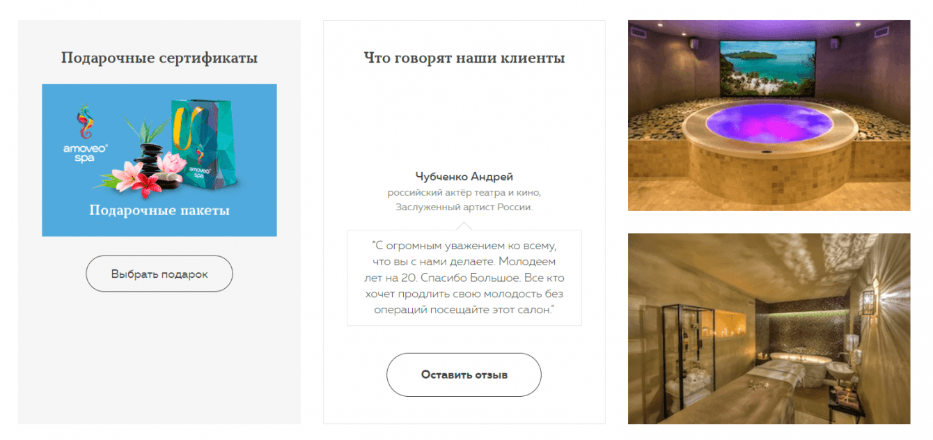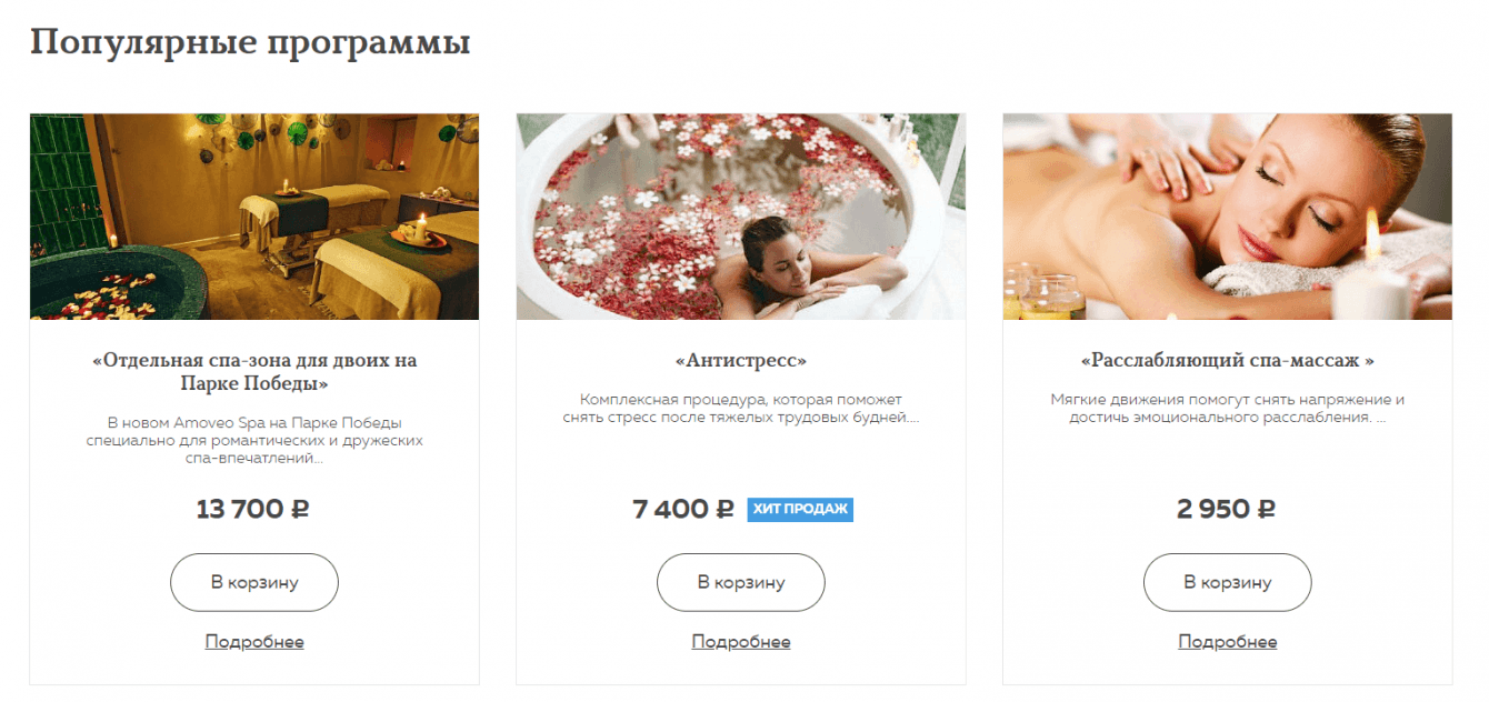 На 2024 год мы сотрудничаем с Amoveo Spa целых 10 лет. За это время сайт стал лучше, функциональнее и безопаснее, а спа-салон получил стабильную и надежную работу своего ресурса. Теперь на сайте можно сразу выбрать и оплатить сертификат на расслабляющие услуги любым удобным способом. Кроме того, через сайт можно внести предоплату и оплатить программы со скидкой, заказать спа-программу с включенной поездкой на такси туда и обратно.