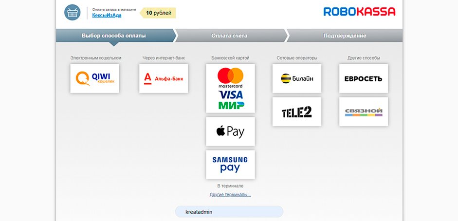 Клиент по полученной ссылке, может перейти на платёжный шлюз Robokassa и удобным для него способом произвести оплату.