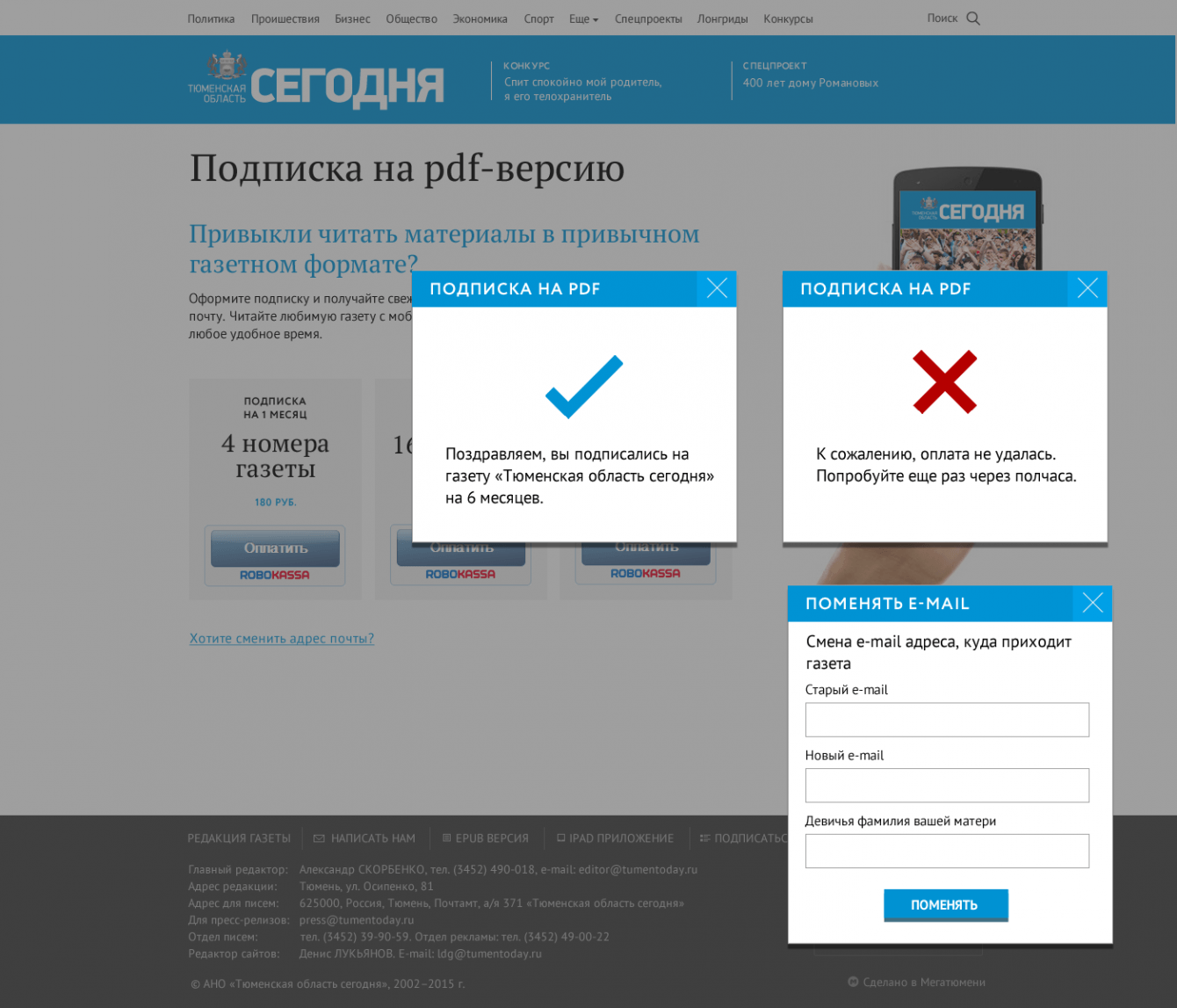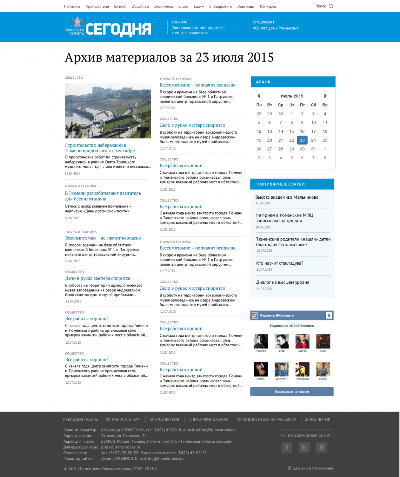 — обеспечение возможности просмотра информации: свежих новостей города и области, редакторских материалов газеты “Тюменская область сегодня”, их акциях, конкурсах, викторинах, голосованиях, проектах, других медиа-данных, связанных с деятельностью газеты
